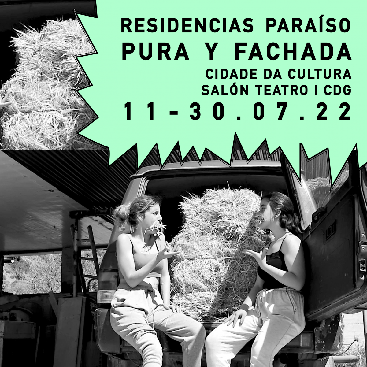 Pura y Fachada nace en marzo de 2022. Jugando y danzando hablan de género, relaciones interpersonales, ruralidad y arte-precariedad. Hicieron en directo la acción HablarPaja (2022) en la exposición Mujeres artistas con la galería ArtTazgona, en Antequera; hablaron de ellas en Kaldo Magazine (Ellas soy Pura y Fachada, 2021); además de iniciar el proyecto de residencia artística independiente TotalArt (2021), germen de este proyecto compartido. Individualmente, ambas artistas estudiaron el Grado en Bellas Artes en Pontevedra (UVigo) y el Máster en Producción Artística Interdisciplinar en Málaga (UMA); y han colaborado y participado en proyectos tanto nacionales como internacionales, desde Málaga o Santiago hasta Barcelos y Santo Domingo.