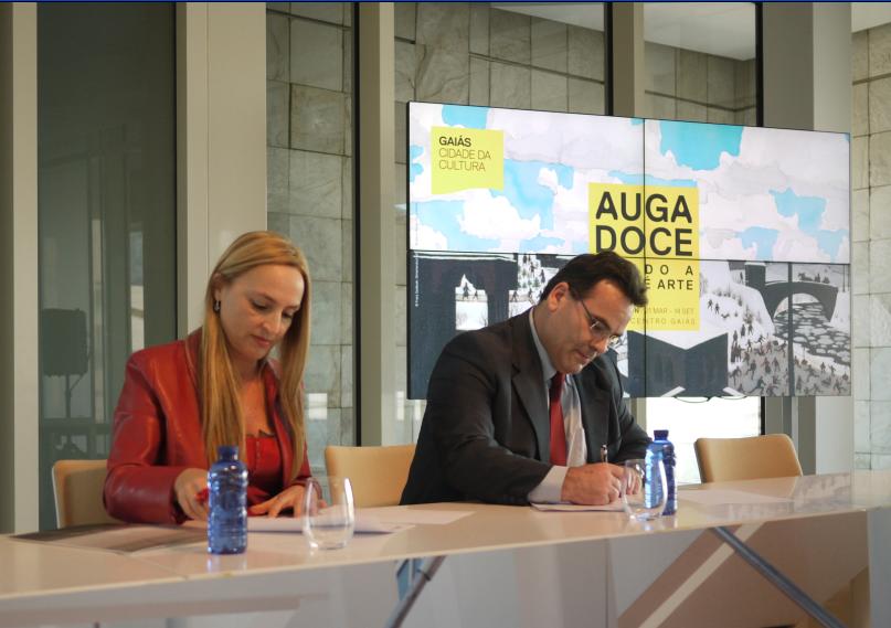 La directora gerente de la Fundación Cidade da Cultura de Galicia, Beatriz González Loroño, y el gerente de la Asociación Compostela Monumental, José Ángel Blanco, firmaron esta mañana un convenio de colaboración para promocionar las actividades culturales que organice el Gaiás en este 2014, entre ellas la exposición ‘Auga Doce', que se inaugurará el próximo 21 de marzo.