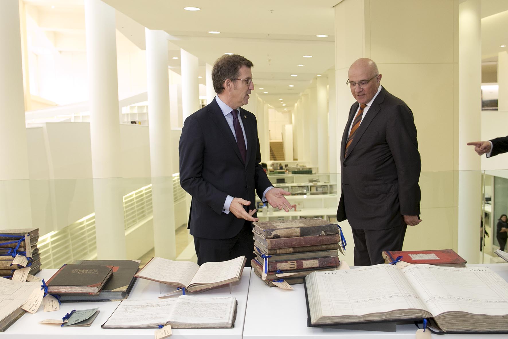El presidente de la Xunta, Alberto Núñez Feijóo, destacó este mediodía el valor histórico y cultural de los más de 600 libros del fondo documental del Banco Gallego que, desde hoy, estarán a la disposición de todos los gallegos en el Archivo de Galicia.