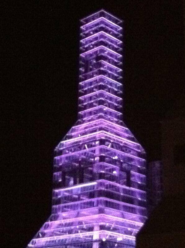 La Fundación Cidade da Cultura de Galicia a través del acuerdo de patrocinio alcanzado con la empresa eléctrica Iberdrola para la iluminación de las Hejduk, tiñó de lila la torre de cristal. Dotada de una iluminación LED con una amplia combinación de colores, la intervención acumula una potencia de siete kilovatios repartida en varias líneas de alta capacidad.
