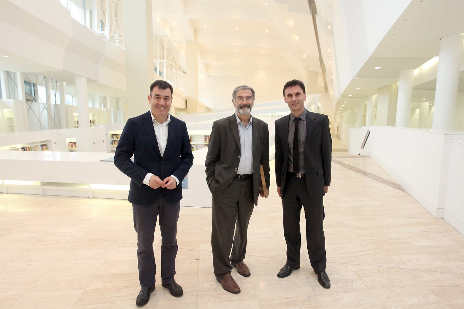 El conselleiro de Cultura, Educación y Ordenación Universitaria, Román Rodríguez, acompañó hoy el premio Nobel de Física 2012, Serge Haroche, en su visita a la Cidade da Cultura de Galicia, un recorrido en el que también participó el profesor Jorge Mira. Haroche visita estos días la capital gallega en el marco del Programa de divulgación científica ConCiencia 2017, impulsado por la Universidad de Santiago de Compostela