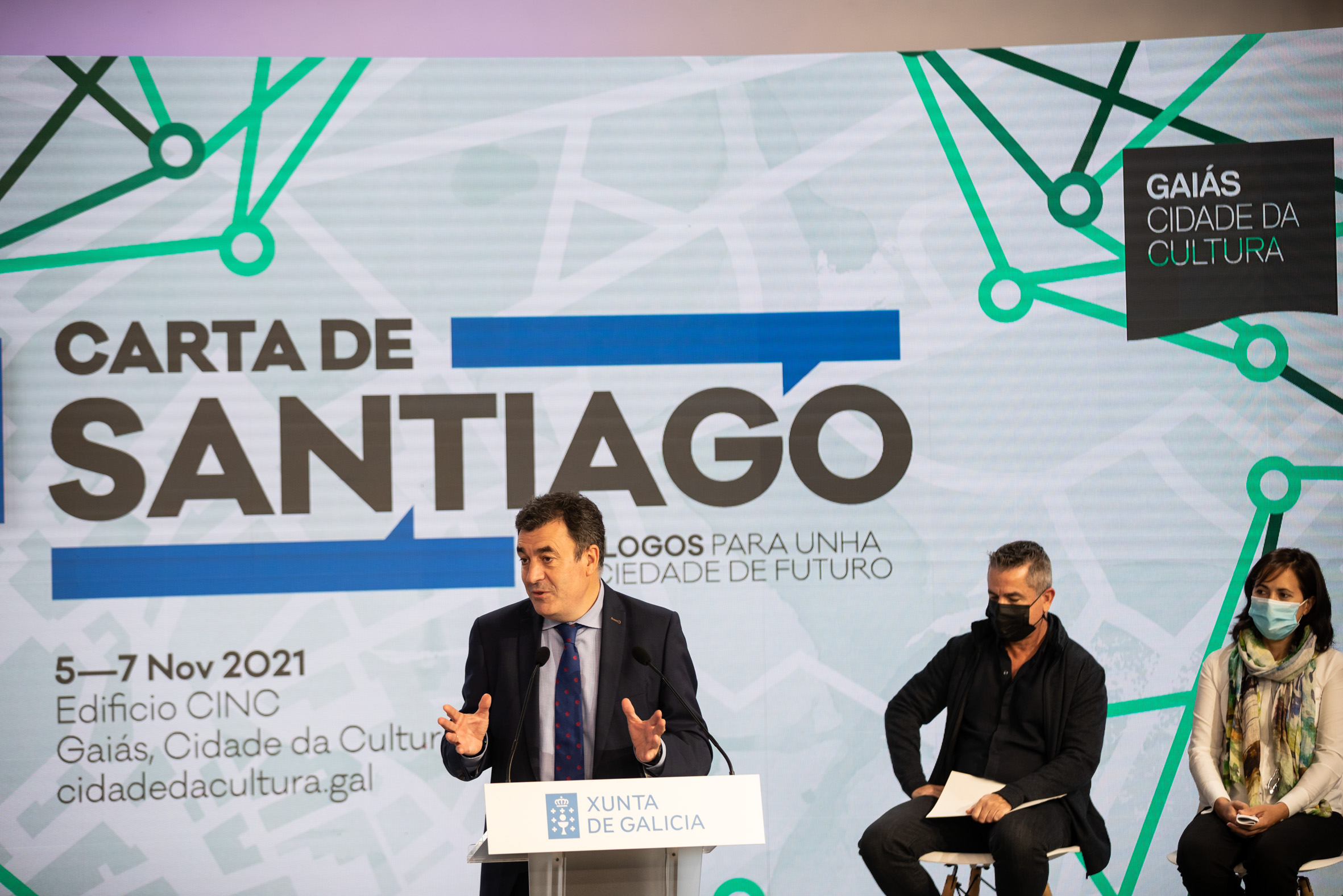 El conselleiro de Cultura, Educación y Universidad, Román Rodríguez, avanzó esta mañana en el Gaiás el contenido del programa de Carta de Santiago, uno de los principales eventos de reflexión en el marco del Xacobeo 21-22, organizado por la Xunta de Galicia en colaboración con la Fundación Paideia Galicia. Este encuentro internacional, que tendrá lugar entre lo 5 y 7 de noviembre en la capital gallega, congregará 40 líderes en ámbitos como la ciencia, la cultura, el medio ambiente o el cambio social.