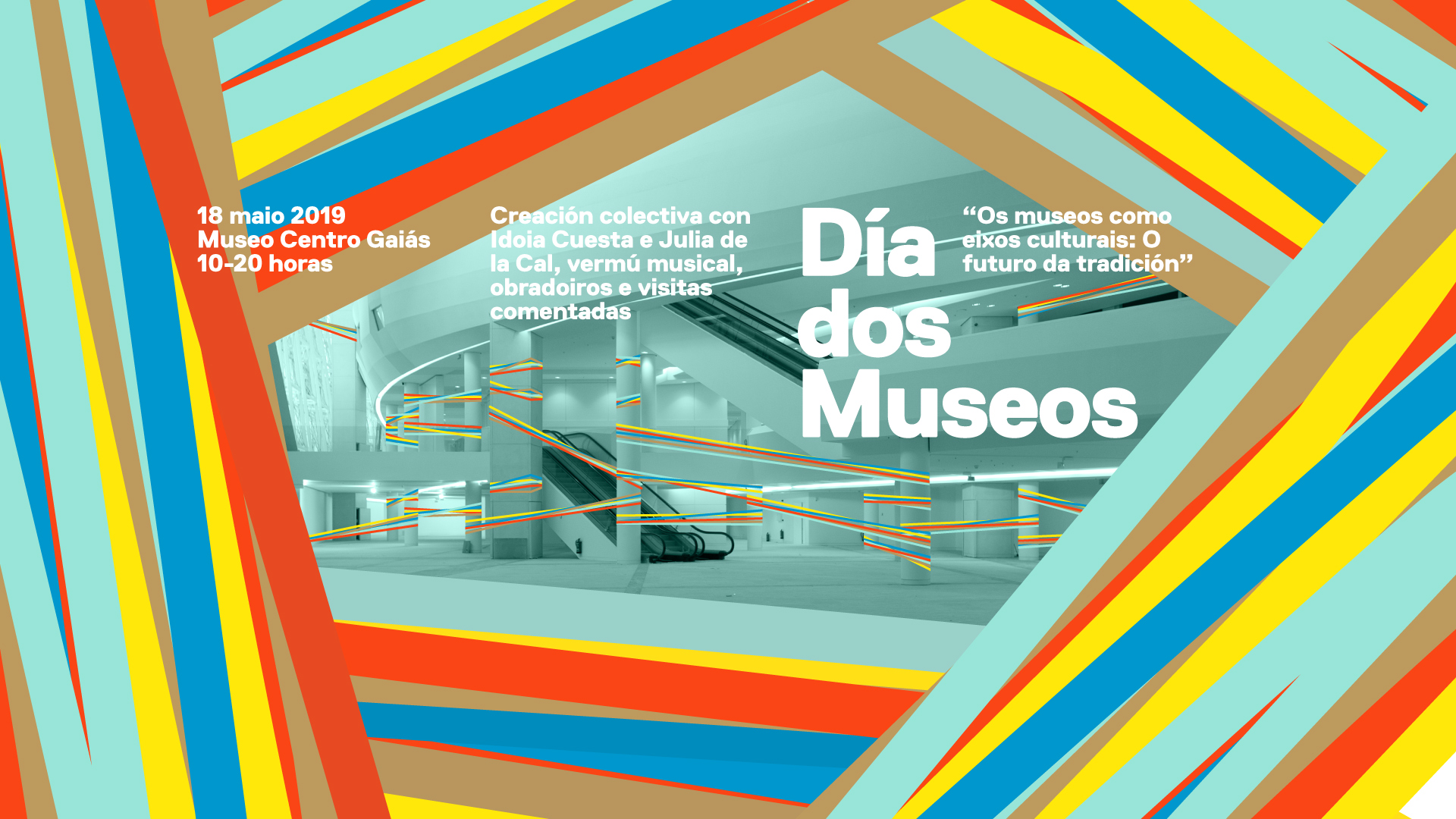 El próximo sábado 18 de mayo el Museo Centro Gaiás se vuelve a convertir en un hervidero de actividad con motivo de los festejos del Día Internacional de los Museos (DIM19). La Cidade da Cultura propone un amplio programa, enteramente gratuito, que incluye ediciones especiales de las visitas comentadas a las exposiciones, talleres de artesanía en los que se conjuga tradición y creación contemporánea y un vermú musical con piano-bar ambientado en los años 30 y 40 en el Hall de Tirantes del Museo.