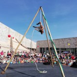 Equilibristas, trapecistas, saltimbanquis y clowns conquistaron todos los rincones de la Plaza Central de la Cidade da Cultura con un mismo objetivo: hacer la cautivada viajar por mundos mágicos. Espectáculos y propuestas de ocio innovadoras compartieron espacio con juegos tradicionales, como simples instrumentos de cuerda y madera. Actividades como globoflexia y talleres de maquillaje de fantasía complementaron también la programación.