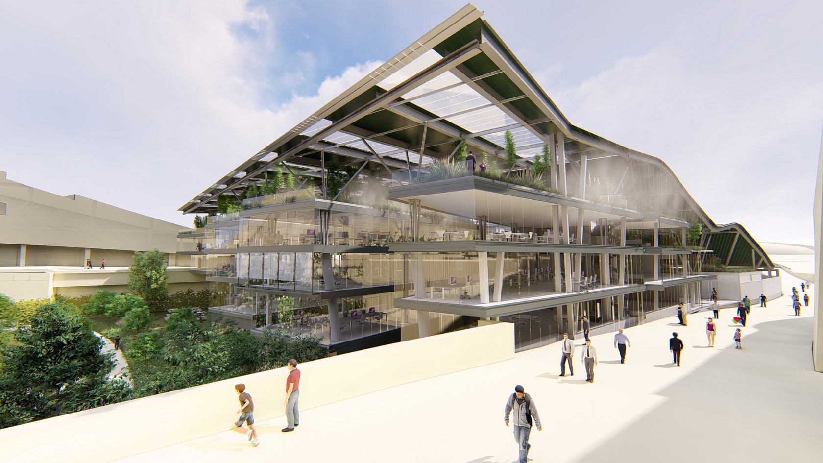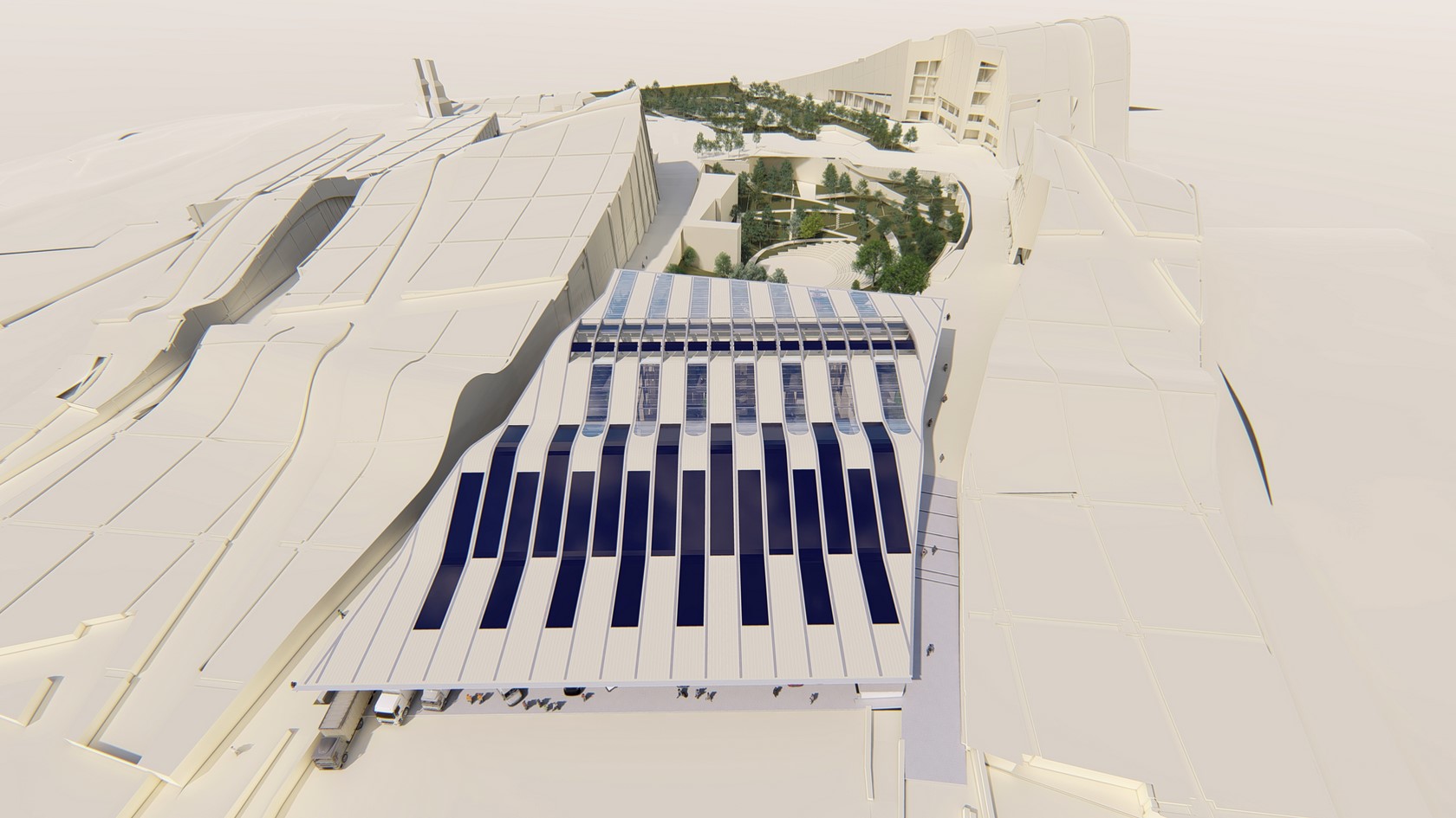 En el ámbito de la sostenibilidad, hace falta subrayar que la obra compartirá los gastos energéticos con el resto de los edificios y maximizará el uso de luz natural. Funcional porque contará con el auditorio con más plazas de toda la Ciudad de la Cultura, con capacidad para 750 personas y divisible en tres salones de actos; además de disponer, en la azotea del último piso, de un jardín cubierto con fachadas abiertas, que también podrá ser empleado como espacio museístico. Y flexible porque está concebido para que sus espacios puedan reorganizarse en función de las necesidades que vayan surgiendo en el futuro.