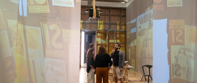 Uno de los puntos destacados de esta exposición es una instalación inmersiva con videomapping y sonido cuadrafónico dentro de un gran cubo de papel. En este espacio, las personas visitantes tendrán además la oportunidad de volver a escuchar la voz de Castelao, gracias a un trabajo de recreación de la misma con tecnología de inteligencia artificial generativa a partir del único registro sonoro conservado: el mensaje, en castellano, que él mismo grabó en fonopostal en la Central de Correos de Buenos Aires, con motivo del estreno de Os vellos non deben de namorarse en Montevideo en 1941.