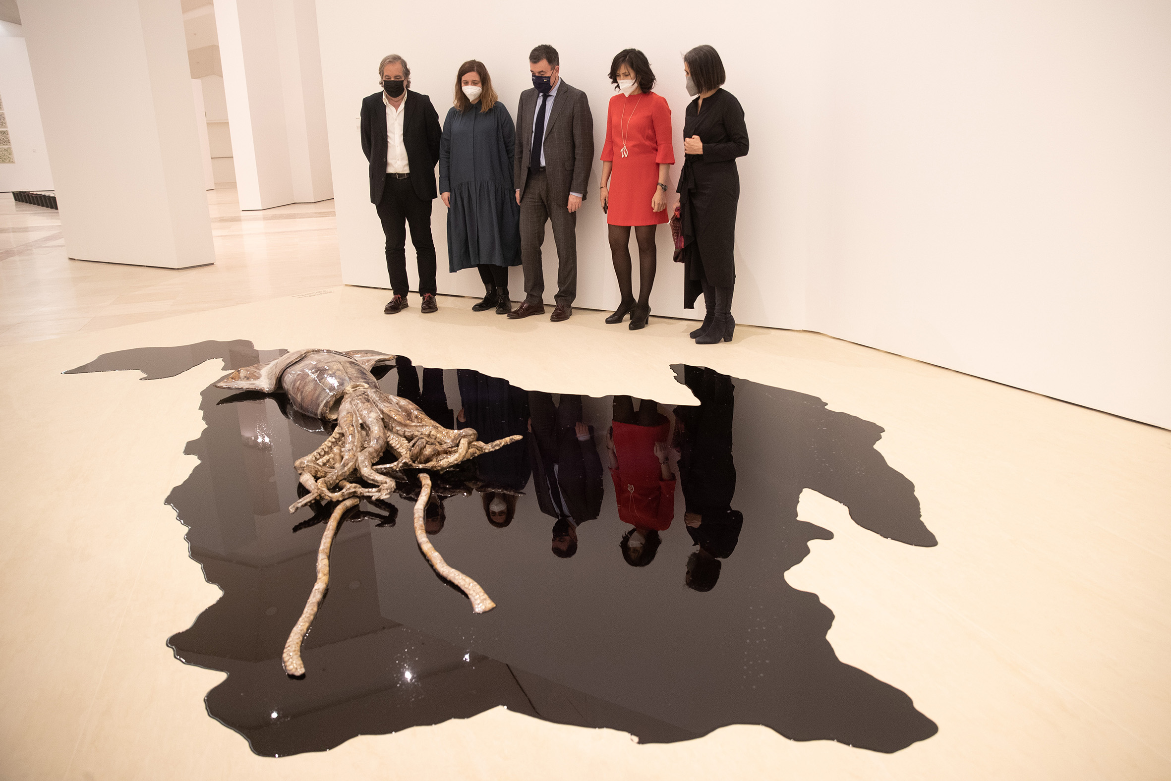 En su intervención, Bea Espejo explicó que para este proyecto además de centrarse en un criterio cromático, también se inspiró en el propio arquitecto de la Cidade da Cultura, Peter Eisenman, quien a través de las páginas de la obra maestra de H. Melville, Moby Dick, imaginó para el Gaiás un museo con “esqueleto de cetáceo”. De este modo, la comisaria indicó que el diseño expositivo emula el vientre de una ballena “en el interior de la cual esta exposición provoca que el arte despliegue su universo de colores”, ahondó.