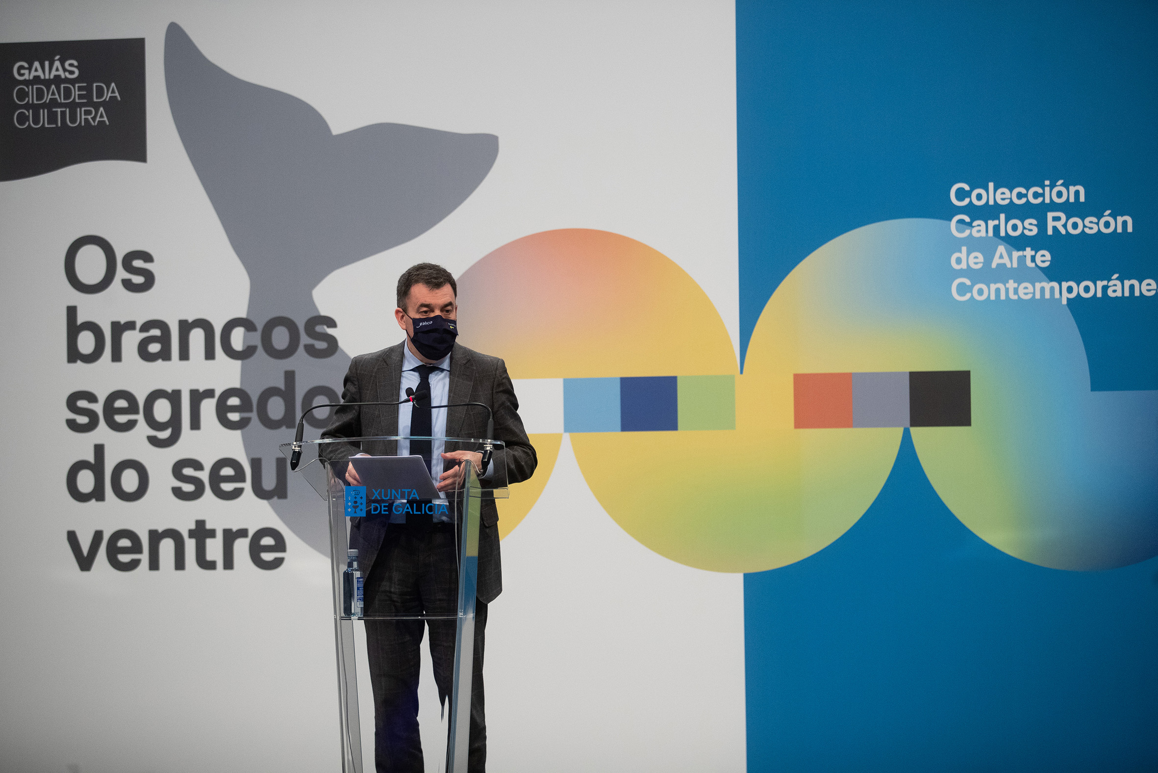 El conselleiro de Cultura, Educación y Universidad, Román Rodríguez, y el presidente de la Fundación RAC, Carlos Rosón, inauguraron hoy en la Cidade da Cultura la exposición Los blancos secretos de su vientre, una selección de 53 obras de los valiosos fondos de la Fundación Rosón de Arte Contemporáneo (Rac), colección privada ubicada en Pontevedra y que atesora uno de los fondos de creaciones actuales más relevantes de España. En esta antología, la comisaria de la muestra, la crítica de arte Bea Espejo, ofrece un recorrido cromático, que va del color blanco al negro, y que permite ver en el Museo Centro Gaiás piezas de artistas de prestigio nacional e internacional.