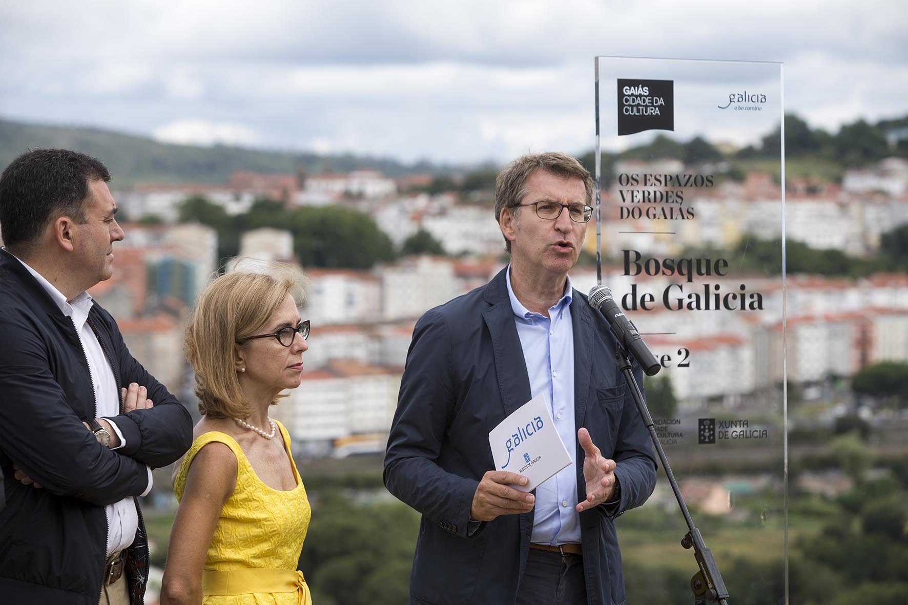 Feijóo aludió también al Plan de humanización del Gaiás, que consiguió convertir este monte en el principal pulmón verde de la capital de la mano de los más reconocidos arquitectos y paisajistas de Galicia. Se diseñaron cinco espacios: el Jardín Literario, el Parque de A Balea, el Parque del Lago, el Jardín del Teatro —que estará listo en primavera del 2019 y en el cual no será necesario invertir un euro más, ya se está ejecutando con fondos ya destinados a la Cidade da Cultura— y, finalmente, el Bosque de Galicia.