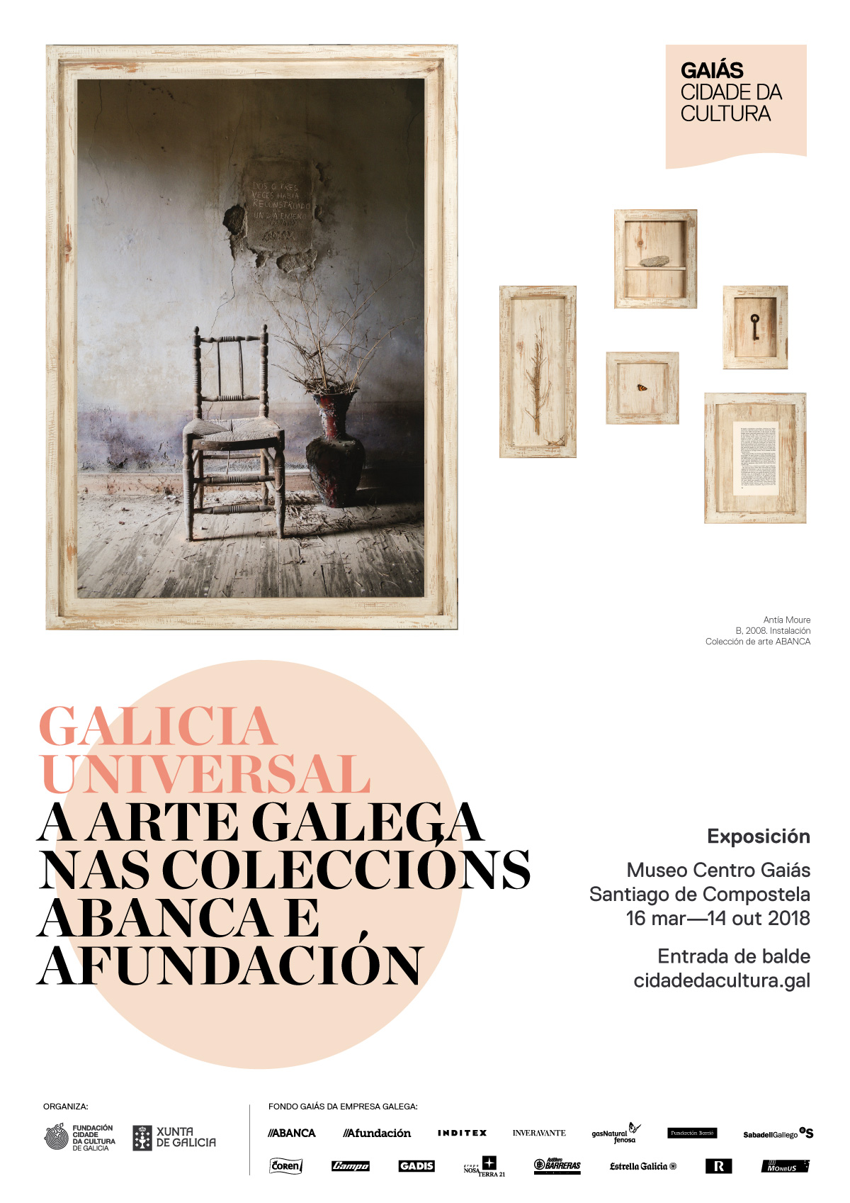 El Museo Centro Gaiás acogerá hasta el 14 de octubre esta antología de pinturas, esculturas, fotografías e instalaciones que supone una oportunidad única para acercarse al proceso de construcción de nuestra identidad cultural y comprender la dimensión universal del arte gallego. A la vez, esta exposición le facilita a toda sociedad el acceso al relevante patrimonio artístico que poseen las importantes colecciones de ABANCA y Afundación.