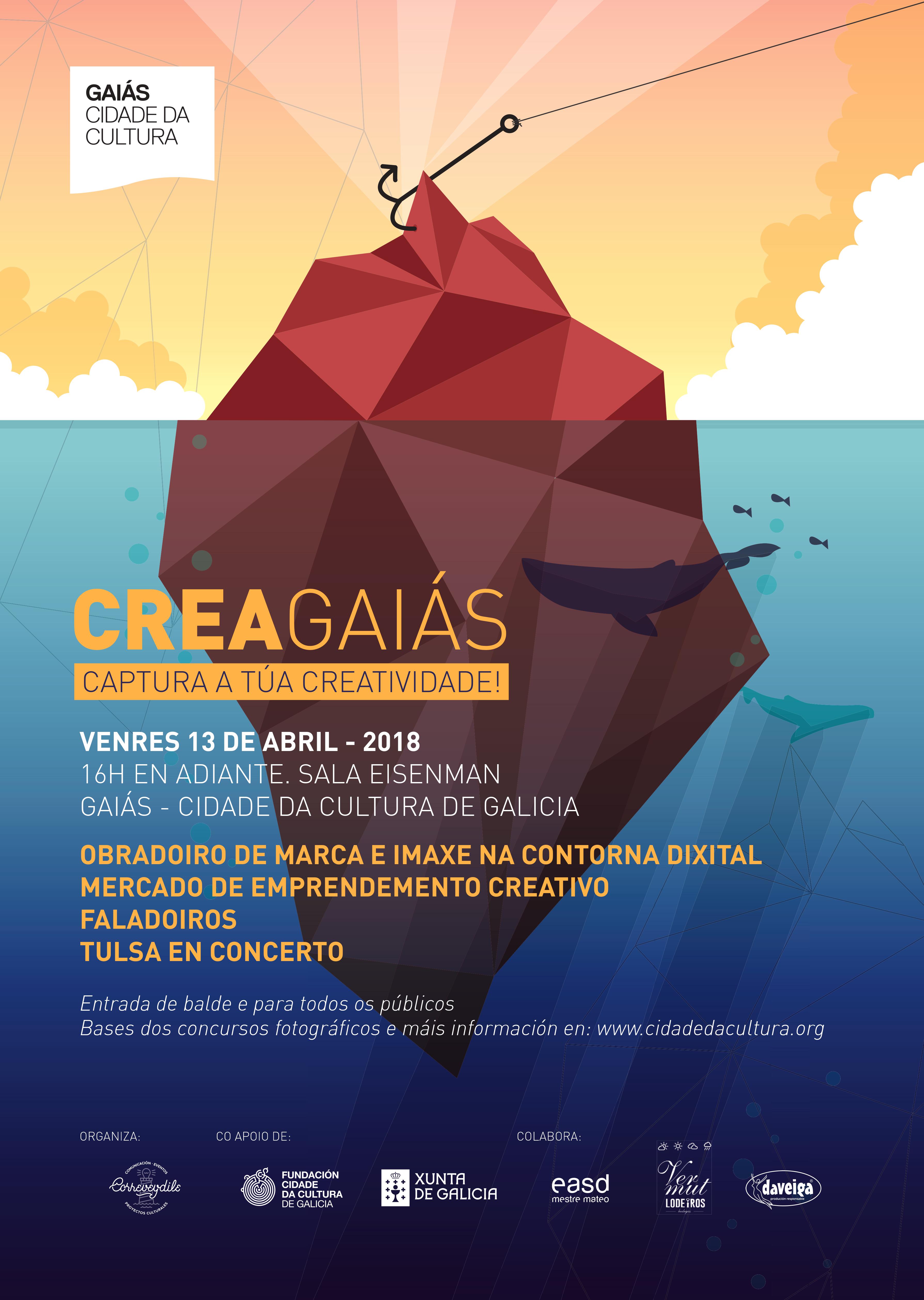 La asistencia a la jornada es libre y de balde hasta completar capacidad. CREAGAIÁS es un proyecto organizado por la empresa de gestión cultural Correveydile con el apoyo de la Fundación Cidade da Cultura de Galicia. Cuenta además con la colaboración de la Escuela de Arte y Superior de Diseño Maestro Mateo, y con las empresas Daveiga y Vermut Lodeiros.