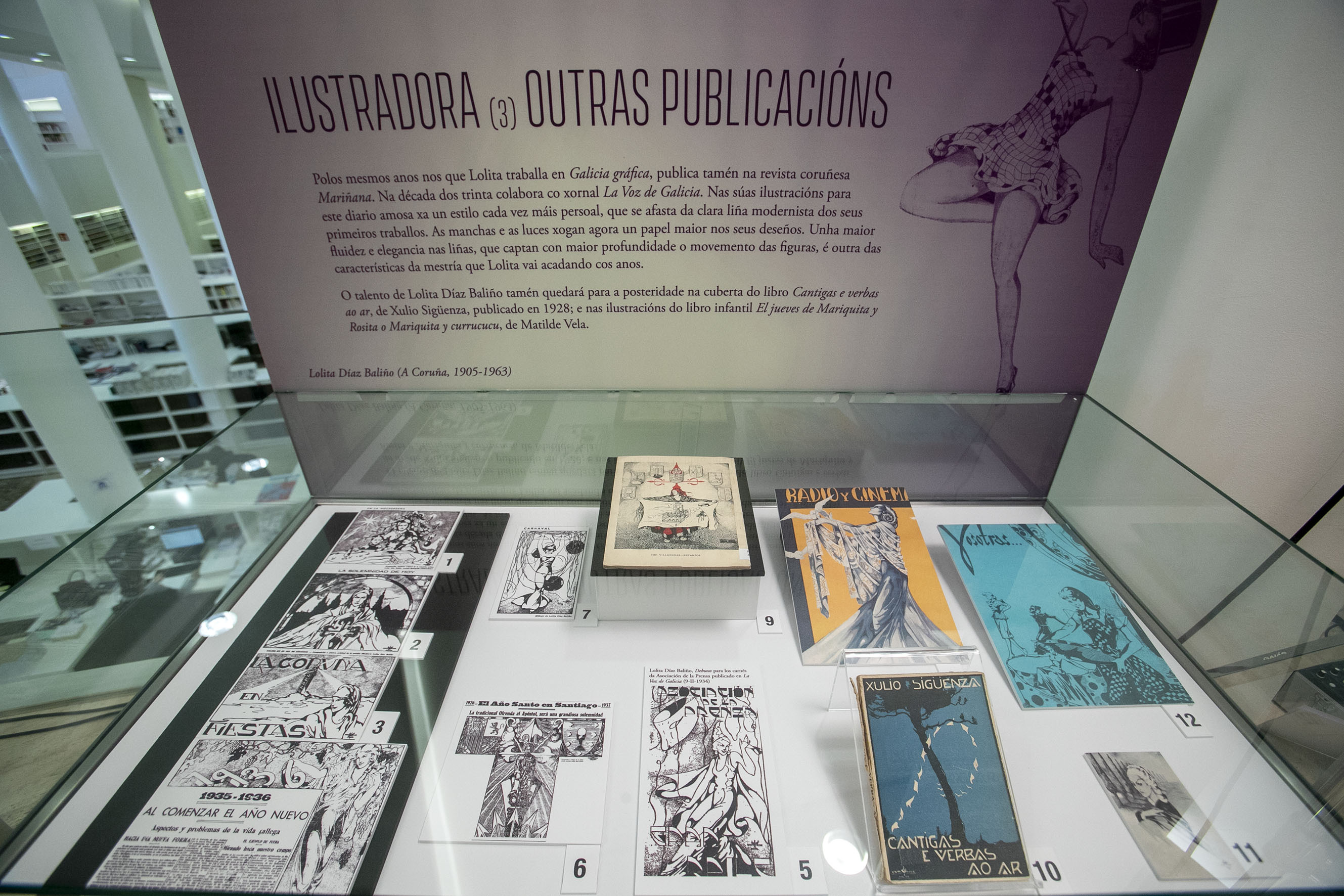 En concreto, la exposición incluye un espacio dedicado a la familia de Lolita, una verdadera saga de artistas de Galicia, y una zona en la que se hace referencia a la figura personal y a la trayectoria profesional y vital. Además, también se recogen los estudios y trabajos sobre la obra de esta artista y se hace un repaso de su obra como ilustradora. Se podrán ver sus trabajos en publicaciones como Galicia, Céltiga o Mariñana, entre otros.