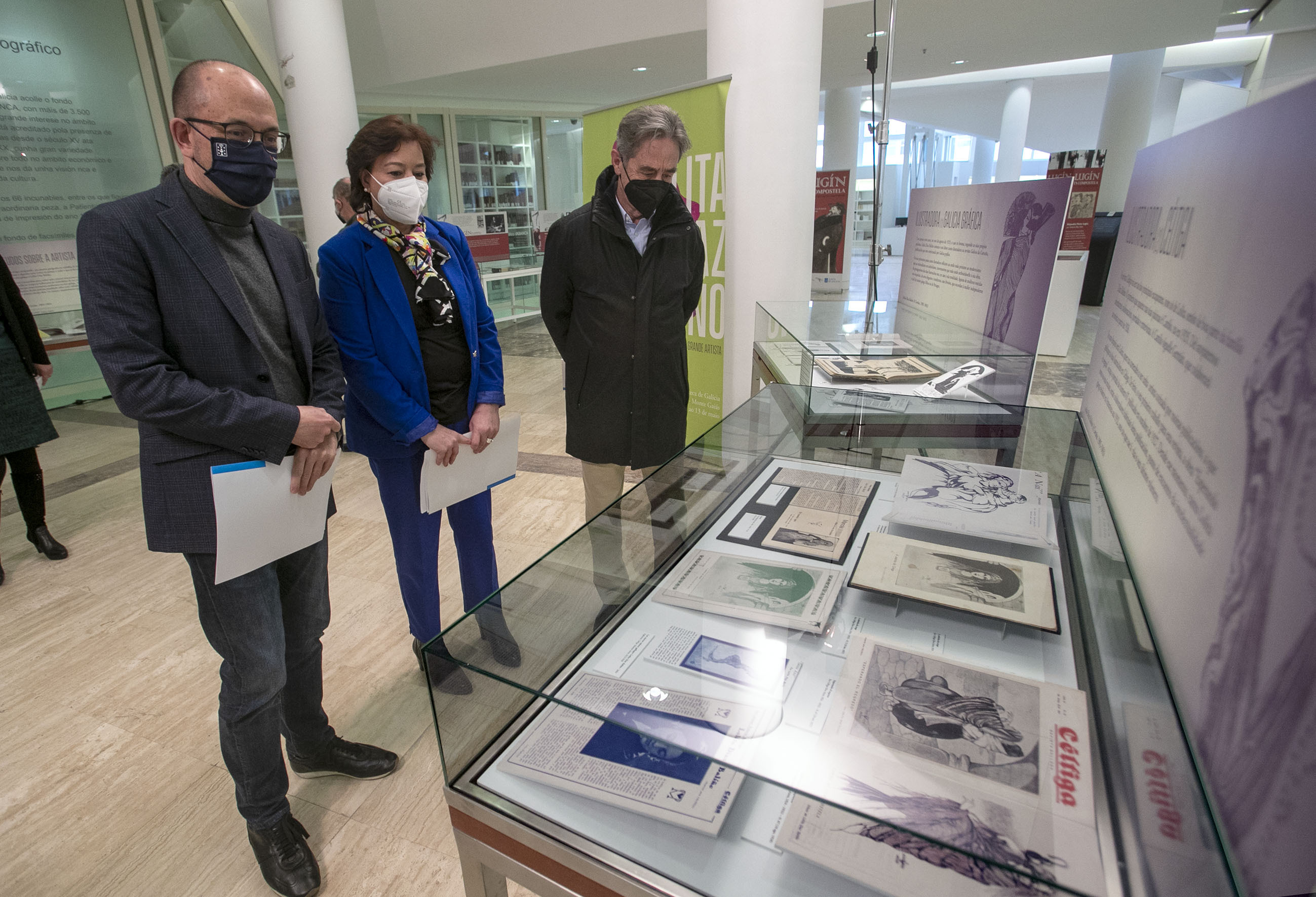 El secretario xeral de Cultura, Anxo M. Lorenzo, y la secretaria xeral da Igualdade, Susana López Abella, visitaron hoy la exposición Lolita Díaz Baliño, la discrección impuesta de una gran artista, con la que la Xunta de Galicia homenajea este año a la que fue la primera mujer en integrarse en la Real Academia Galega de Belas Artes. La muestra –concebida en el marco del Día de la Ilustración del pasado 30 de enero– retoma así su versión presencial después de haber sido aplazada por mor de la situación sanitaria de las últimas semanas, aunque estuvo disponible de manera online.