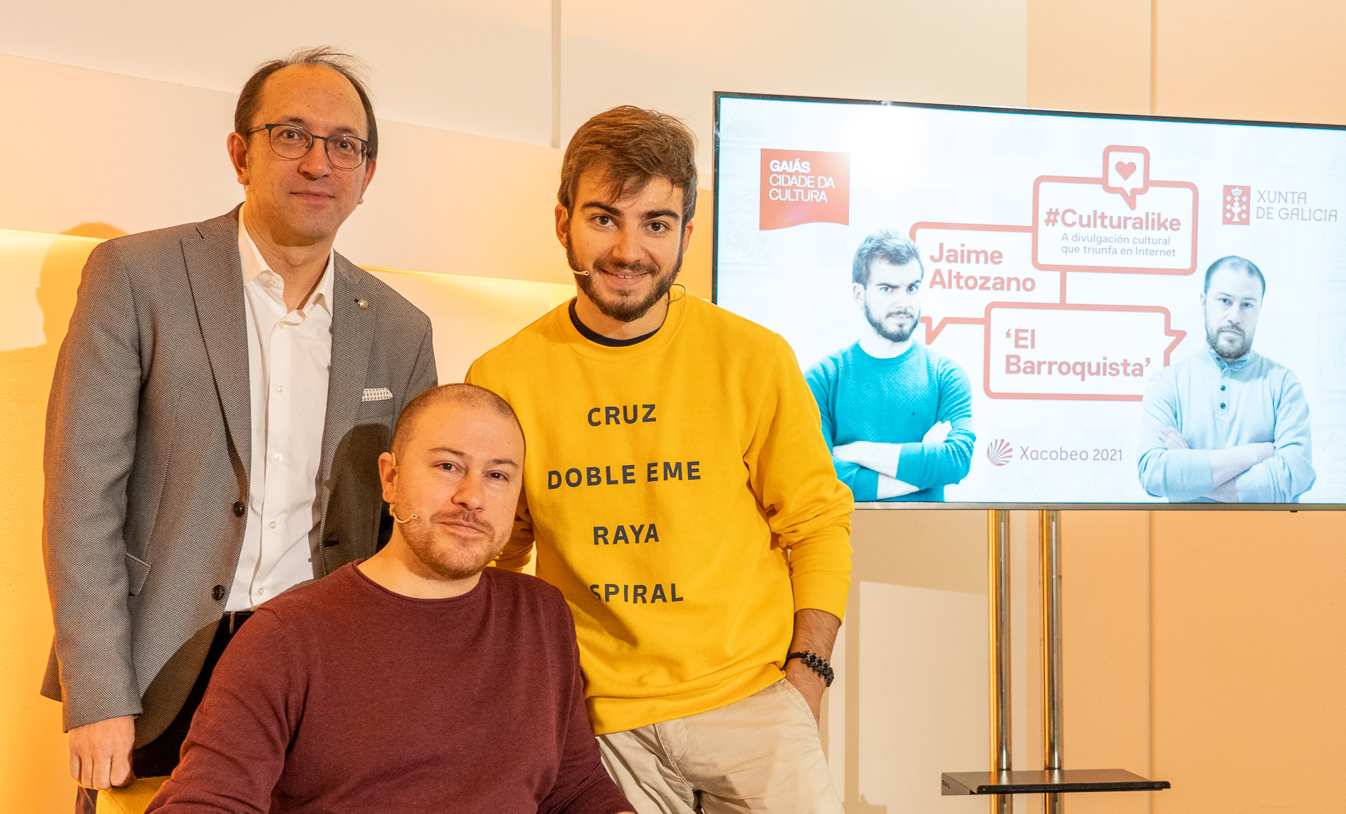 El director general de Políticas Culturales, Anxo M. Lorenzo, recibió hoy a los asistentes al encuentro #CulturaLike organizado por la Xunta de Galicia en la Cidade da Cultura en el que participan dos destacados divulgadores culturales en línea como son Jaime Altozano –con más de dos millones de seguidores en sus redes sociales– y el gallego Miguel Ángel Cajigal, más conocido cómo El Barroquista –con más de 40.000 solo en el canal de Twitter– para dar a conocer las llaves de su éxito en la creación de contenidos culturales de impacto en Internet.