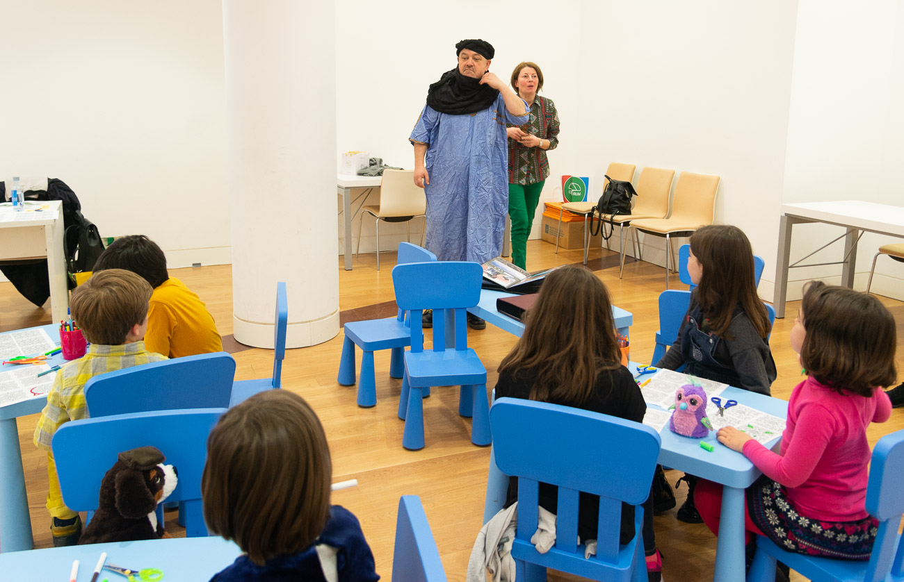 De este modo, en este taller los niños y niñas pusieron en común todo lo que saben o creen conocer del mundo árabe y su cultura con el objeto de desmontar perjuicios a través del descubrimiento al por menor —y de una manera divertida y didáctico— de su música, de su gastronomía y de su patrimonio.