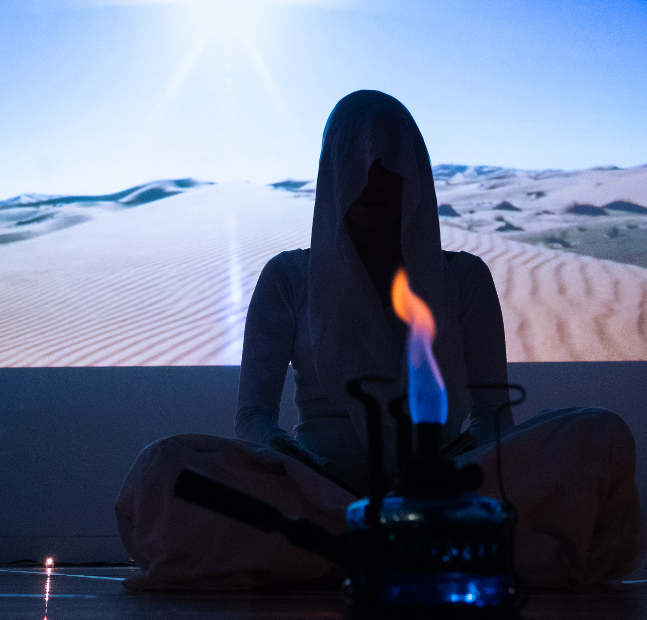 La intervención de Gema Martín Muñoz finalizó, como viene a ser habitual en las sesiones de Nexos, con una actuación artística. En este caso se contó con el espectáculo sonoro y visual inspirado en la poesía de tradición sufí, a cargo del artista multidisciplinar Nenoescuro. Con la colaboración de Yasmina Farhani, sumergió los y las participantes por la tradición sufí desde una lectura contemporánea.