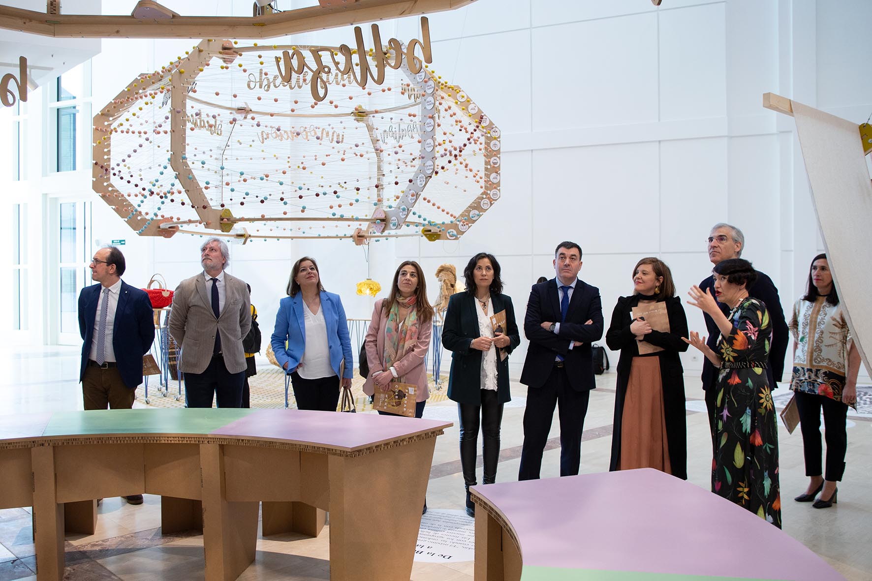 En la apertura de Pensar con las manos, la comisaria de la muestra, Verónica Santos, destacó el hecho de que la exposición permitirá admirar juntas piezas de autores o talleres de renombre “internacional” como es Idoia Cuesta, cuya innovación en la cestería despertó el interés de firmas como Loewe, con la que colabora; el de Ojea Studio y Cerámica Suve, cuyas vajillas son empleadas en el alta cocina de chefs como Pepe Solla, Pepe Vieira o Carme Ruscalleda; o Madriguera Workshop, que viene de participar en la Maison & Objet de París, feria internacional de referencia en el ámbito de la decoración.