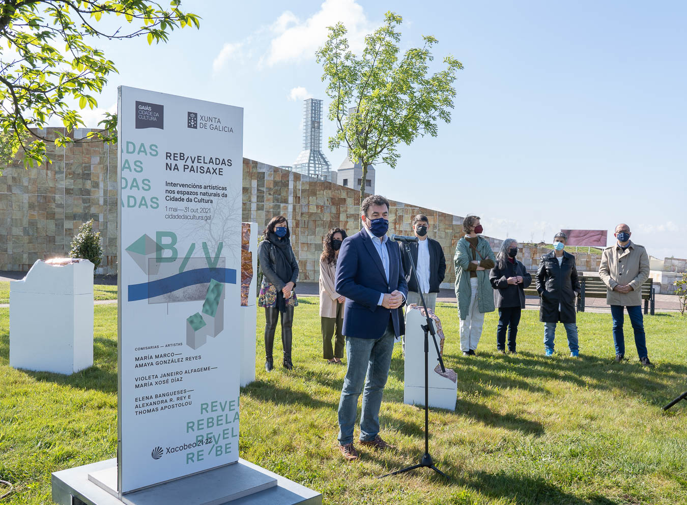 O conselleiro de Cultura, Educación e Universidade, Román Rodríguez, inaugurou hoxe na Cidade da Cultura a terceira edición do ciclo Reb/veladas na paisaxe co que a Xunta de Galicia consolida o seu compromiso de darlle maior visibilidade á presenza da muller na arte e contemporánea. Deste xeito, este ciclo de intervencións artísticas no espazos naturais do Gaiás mantén a súa aposta pola perspectiva de xénero no ámbito creativo e volve contar cunha presenza maioritaria feminina, tanto nas comisarias –María Marco, Elena Bangueses e Violeta Janeiro– como nas artistas: Amaya González Reyes, María Xosé Díaz e Alexandra R. Rey, quen traballa xunto a Thomas Apostolou.