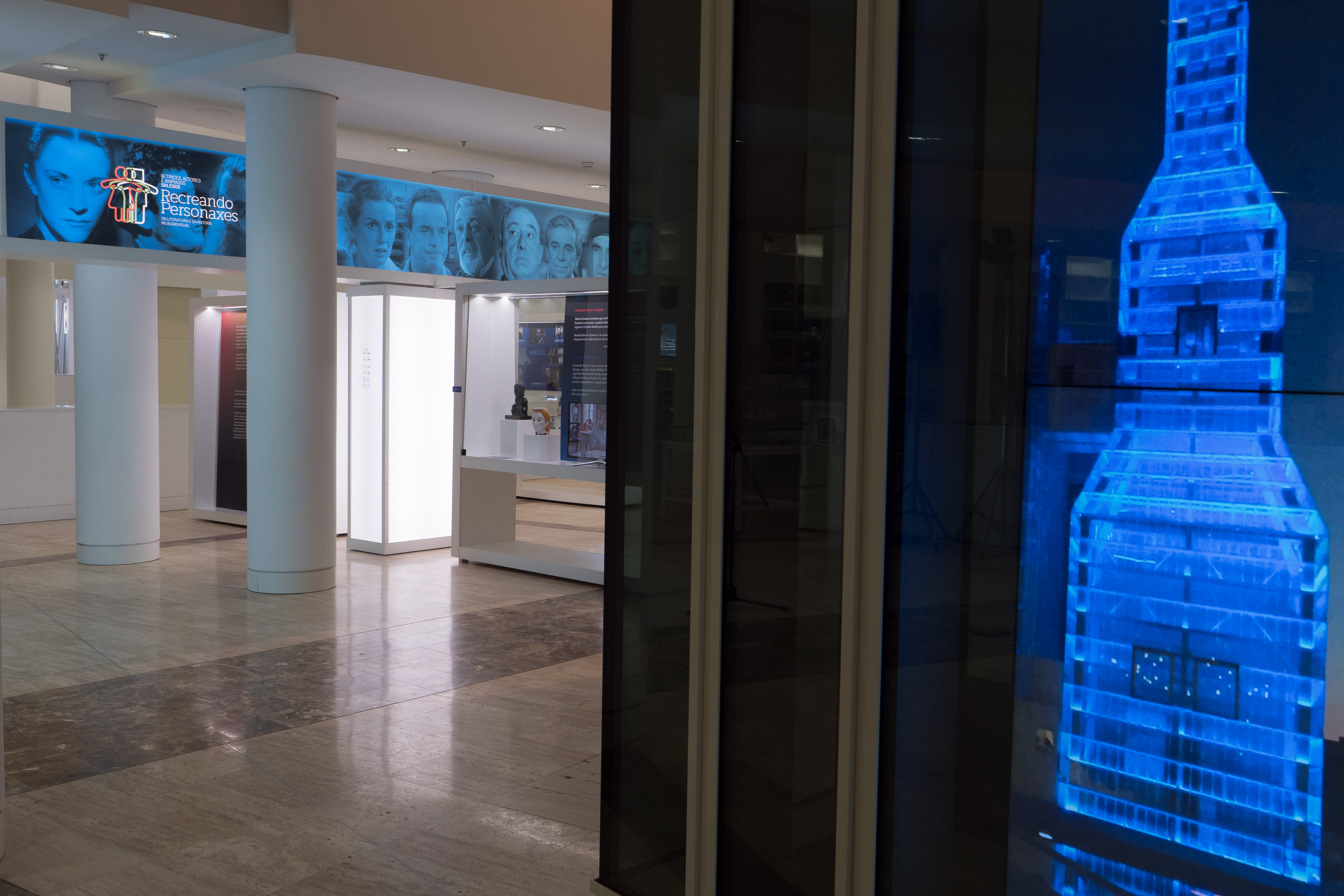 Bajo el nombre completo de Actrices, actores e animados galegos RECREANDO PERSONAXES da literatura e da historia no audiovisual, la muestra se articula en cuatro secciones. La primera de ellas pone el foco en los trabajos interpretativos, comenzando por dos grandes nombres del cine internacional nacidos en Galicia: María Casares y Fernando Rey que, entre otros, le dieron vida a la duquesa Gina de Sanseverine de A Cartuxa de Parma o a Don Quijote.