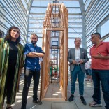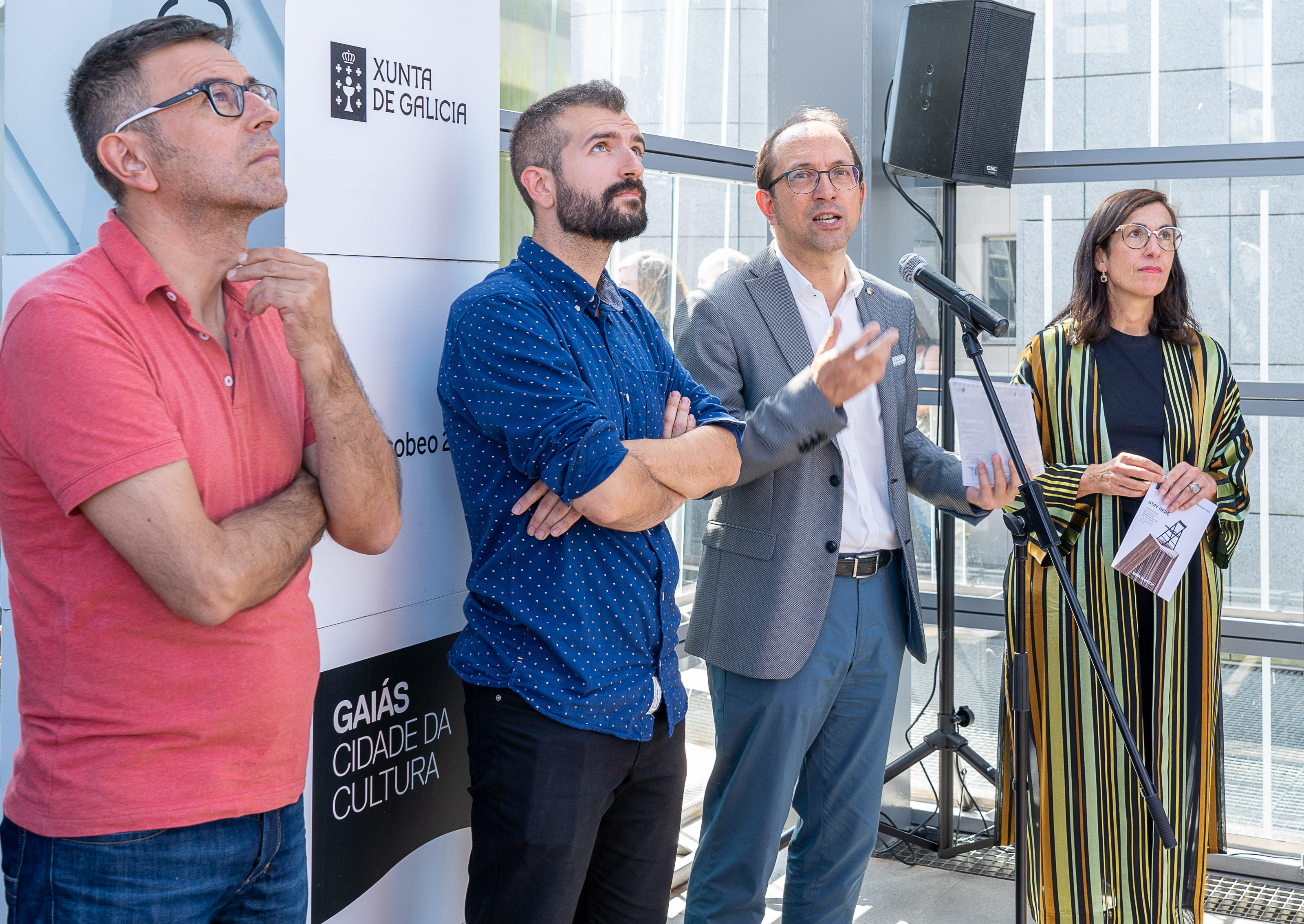 De este modo, acompañado por la director del EAN, Rafael Doctor; del delegado de Iberdrola en Galicia, Francisco Silva; de la directora de Acción Cultural del Gaiás, María Otero Pereira; y del propio creador de Stay Here, Ángel M. Lorenzo puso en valor que los “nuevos discursos y nuevos enfoques artísticos” que pueden salir de este concurso de intervenciones artísticas ayudarán a ampliar el “hito, social, religioso y espiritual del Xacobeo”.