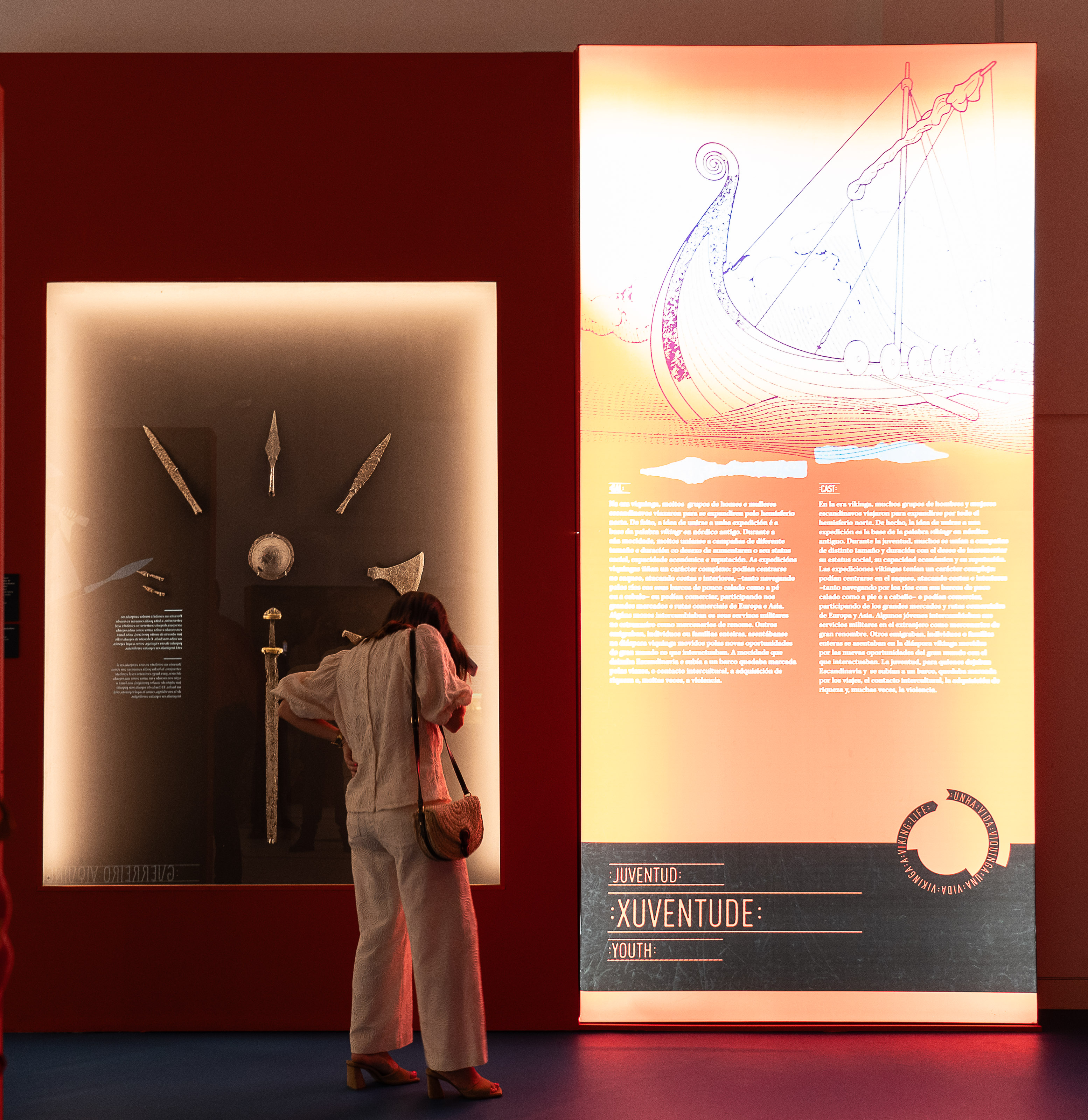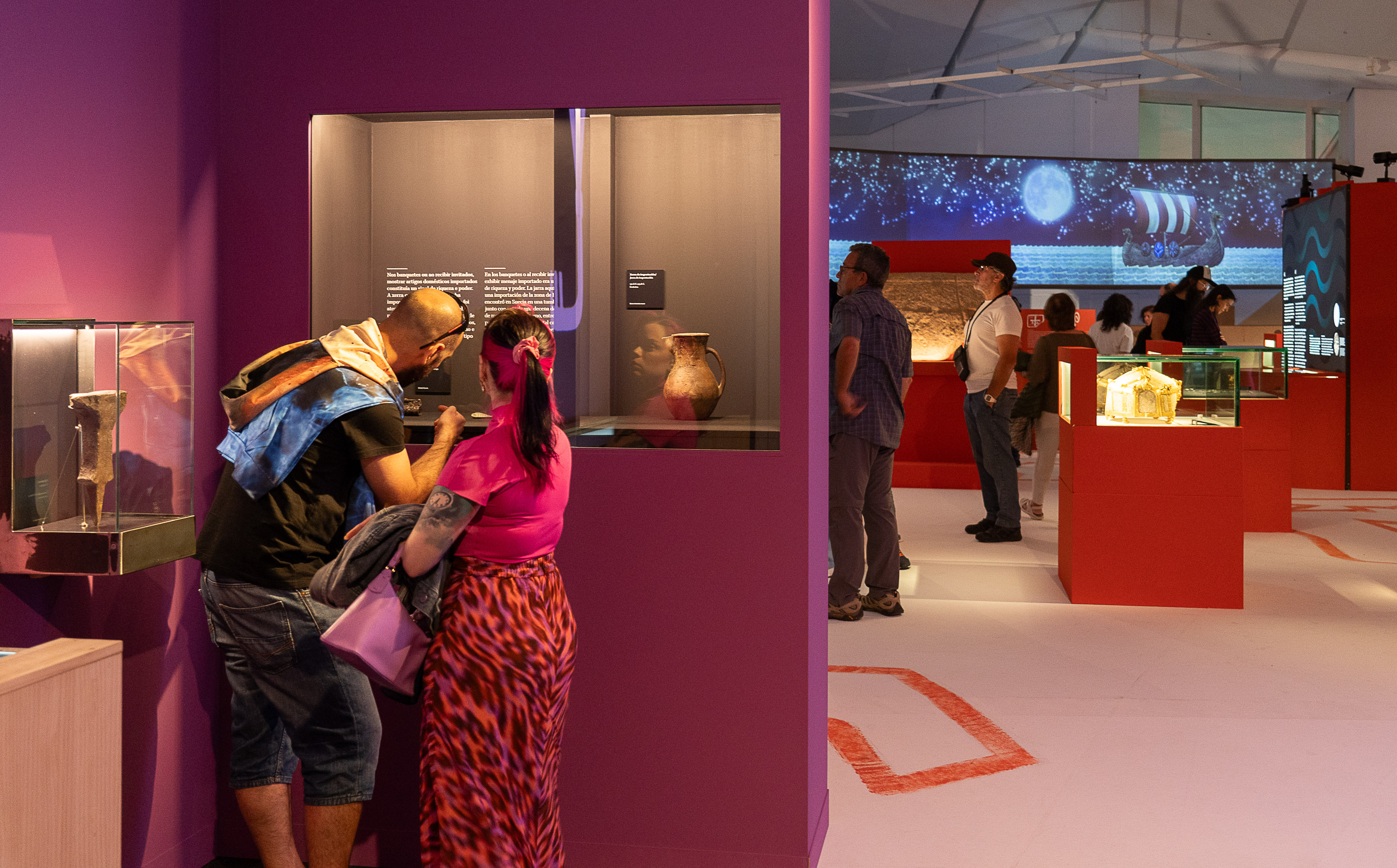 Encuadrada en la programación de verano de la Consellería de Cultura, Lingua e Xuventude, el CulturON, la exposición incluye piezas históricas y arqueológicas únicas, muchas de ellas nunca antes exhibidas en España, audiovisuales desarrollados por el premiado dibujante gallego David Rubín e incluso una recreación a tamaño real de una embarcación vikinga de más de 17 metros de longitud, diseñada por el estudio gallego Cenlitros.
