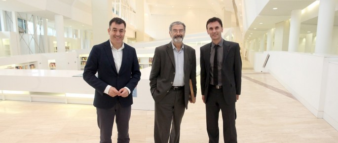 El conselleiro de Cultura, Educación y Ordenación Universitaria, Román Rodríguez, acompañó hoy el premio Nobel de Física 2012, Serge Haroche, en su visita a la Cidade da Cultura de Galicia, un recorrido en el que también participó el profesor Jorge Mira. Haroche visita estos días la capital gallega en el marco del Programa de divulgación científica ConCiencia 2017, impulsado por la Universidad de Santiago de Compostela