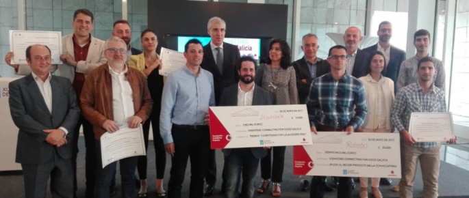 El programa Vodafone Connecting for Good Galicia concedió hoy 35.000 euros a los dos mejores proyectos tecnológicos de su convocatoria 2016. Estos reconocimientos fueron otorgados en el acto de clausura de la primera edición del programa, que tuvo lugar esta mañana en la Ciudad de la Cultura, presidido por el conselleiro de Economía, Empleo e Industria de la Xunta, Francisco Conde, y que contó con la presencia del director de Administraciones Públicas de Vodafone, Diego Torrico, y del director general de la Fundación Vodafone España, Santiago Moreno.