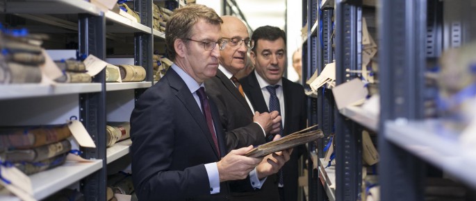 El presidente de la Xunta, Alberto Núñez Feijóo, destacó este mediodía el valor histórico y cultural de los más de 600 libros del fondo documental del Banco Gallego que, desde hoy, estarán a la disposición de todos los gallegos en el Archivo de Galicia.