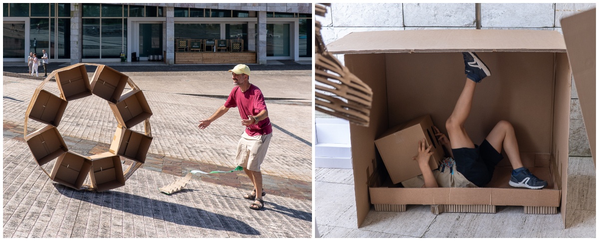 Cartón reciclado e un feixe de rapazada creativa son os ingredientes deste laboratorio no que as persoas participantes poden construír, experimentar e transformar o espazo mediante o xogo e a intervención colectiva.