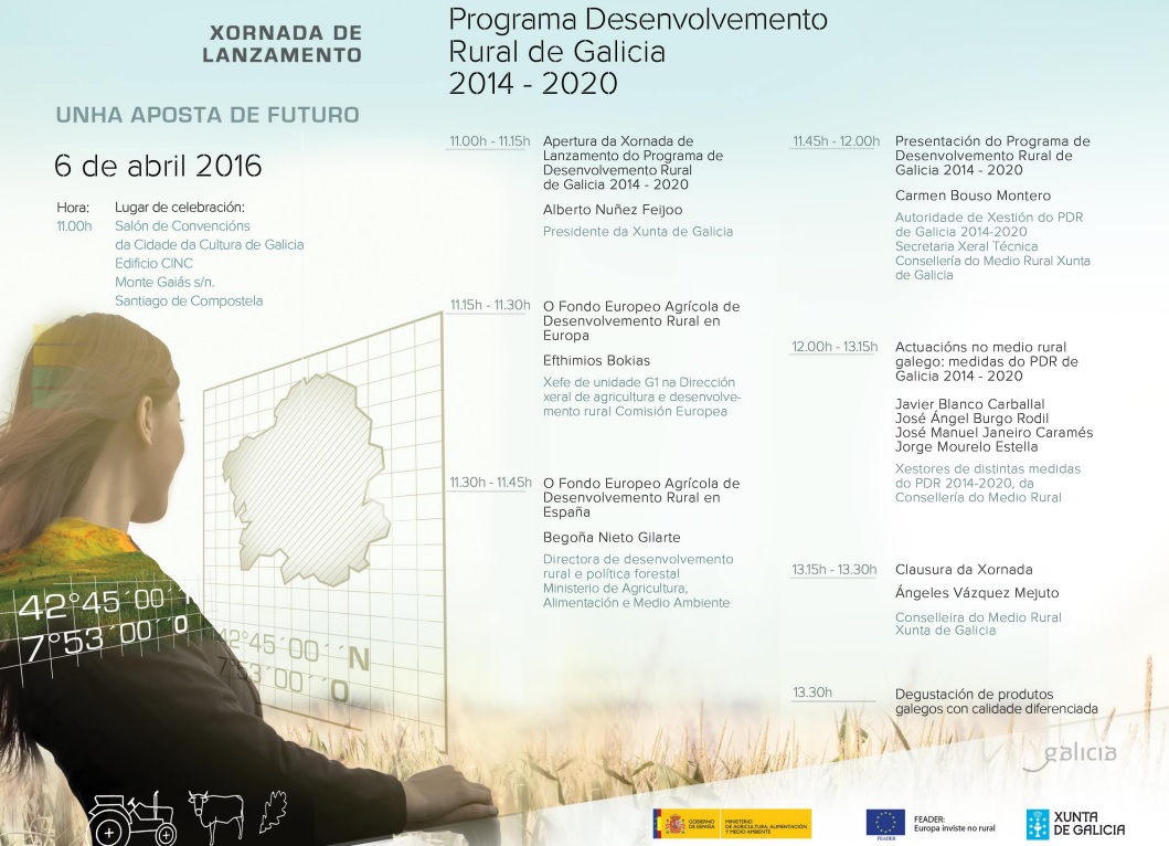 O programa de desenvolvemento rural (PDR) de Galicia foi adoptado oficialmente pola Comisión Europea o 18 de novembro de 2015, e nel preséntanse as prioridades de Galicia no que respecta á utilización dos 1.186,4 millóns EUR de fondos públicos dispoñibles para o septenio 2014-2020 (889,8 millóns EUR con cargo ao orzamento da UE, 296,6 millóns EUR de cofinanciación nacional).