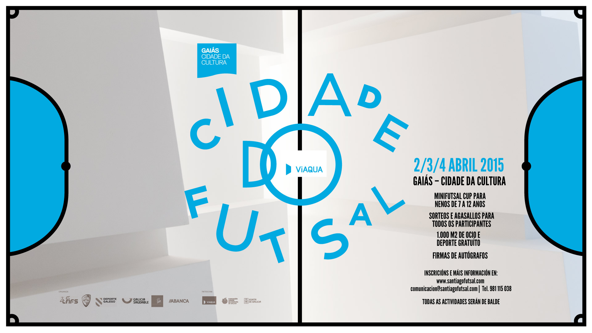 O patrocinador do evento deportivo deste ano Viaqua, e os colaboradores Fundación Cidade da Cultura e Concello de Santiago de Compostela, apostan por promover o deporte do fútbol sala entre os máis pequenos e o compromiso co medio ambiente e, en xeral, coa cidade de Santiago de Compostela.