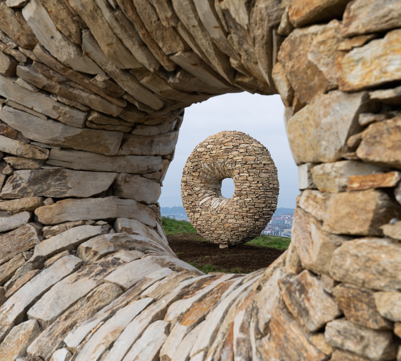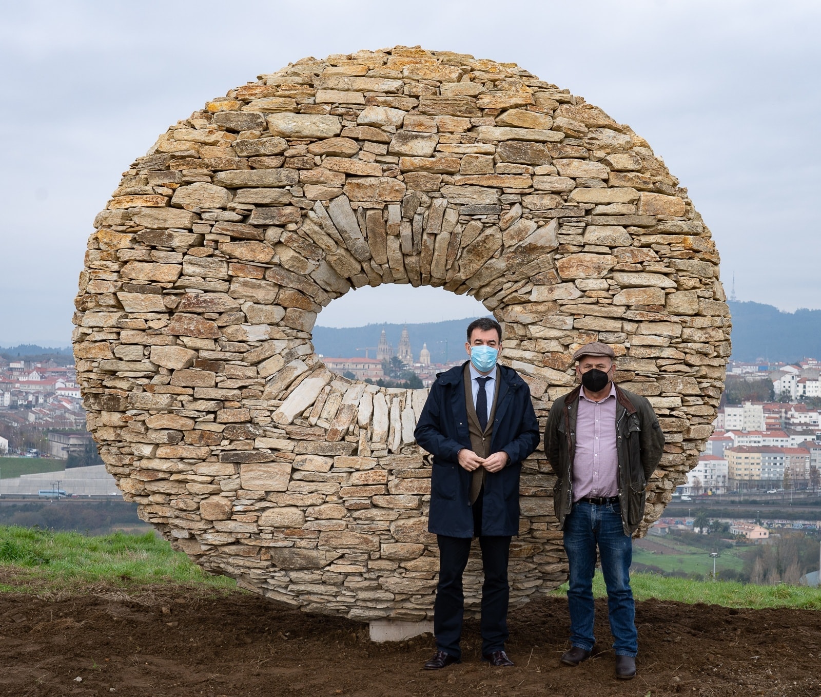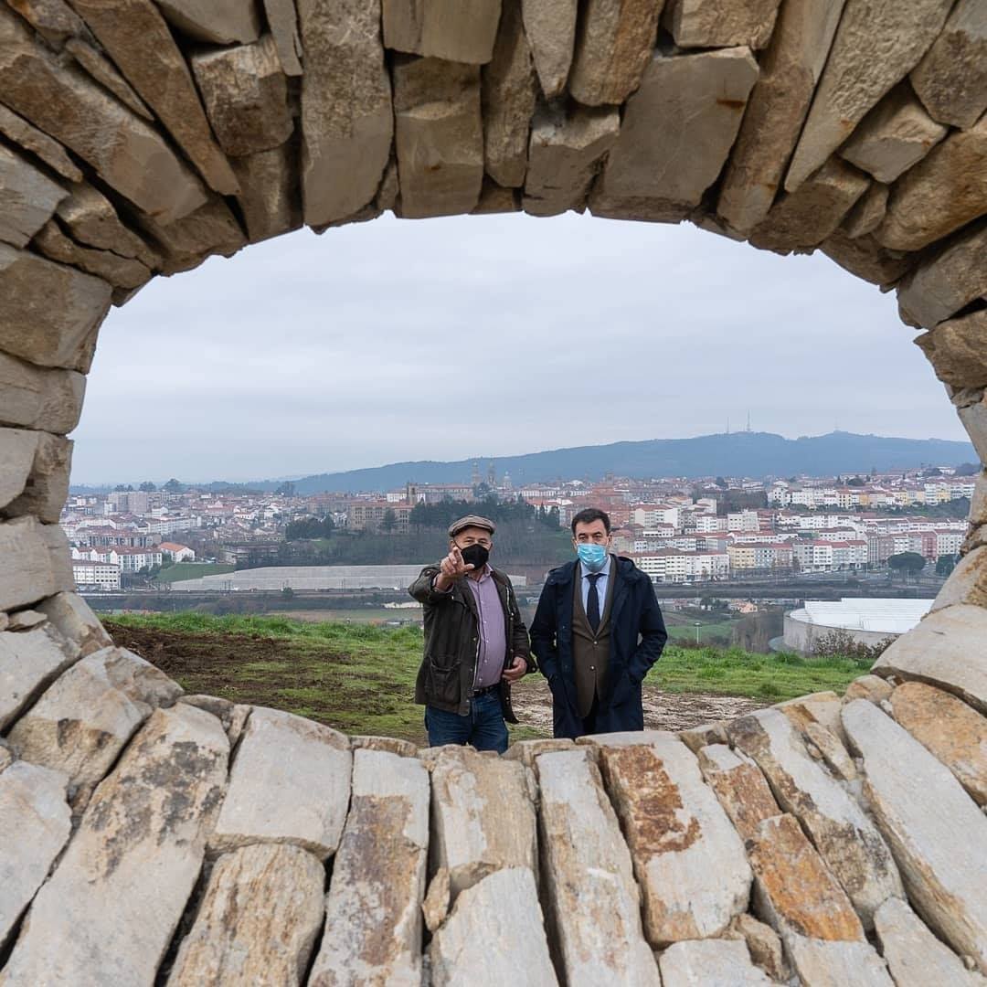 Nesta liña, o titular de Cultura e Educación explicou que a intervención artística está composta por grandes cilindros de pedra que funcionan como unha gran fiestra de pedra “desde a que contemplar a capital galega desde unha perspectiva única”. Así, apuntou que estas pezas artísticas procuran, por tanto, espertar o interese deses camiñantes co obxecto de que fagan unha parada no camiño para visionar —antes da meta anhelada que é a Catedra¬l— a perspectiva orixinal que da mesma se lle ofrece desde este cumio, integrada na contorna natural da capital de Galicia.