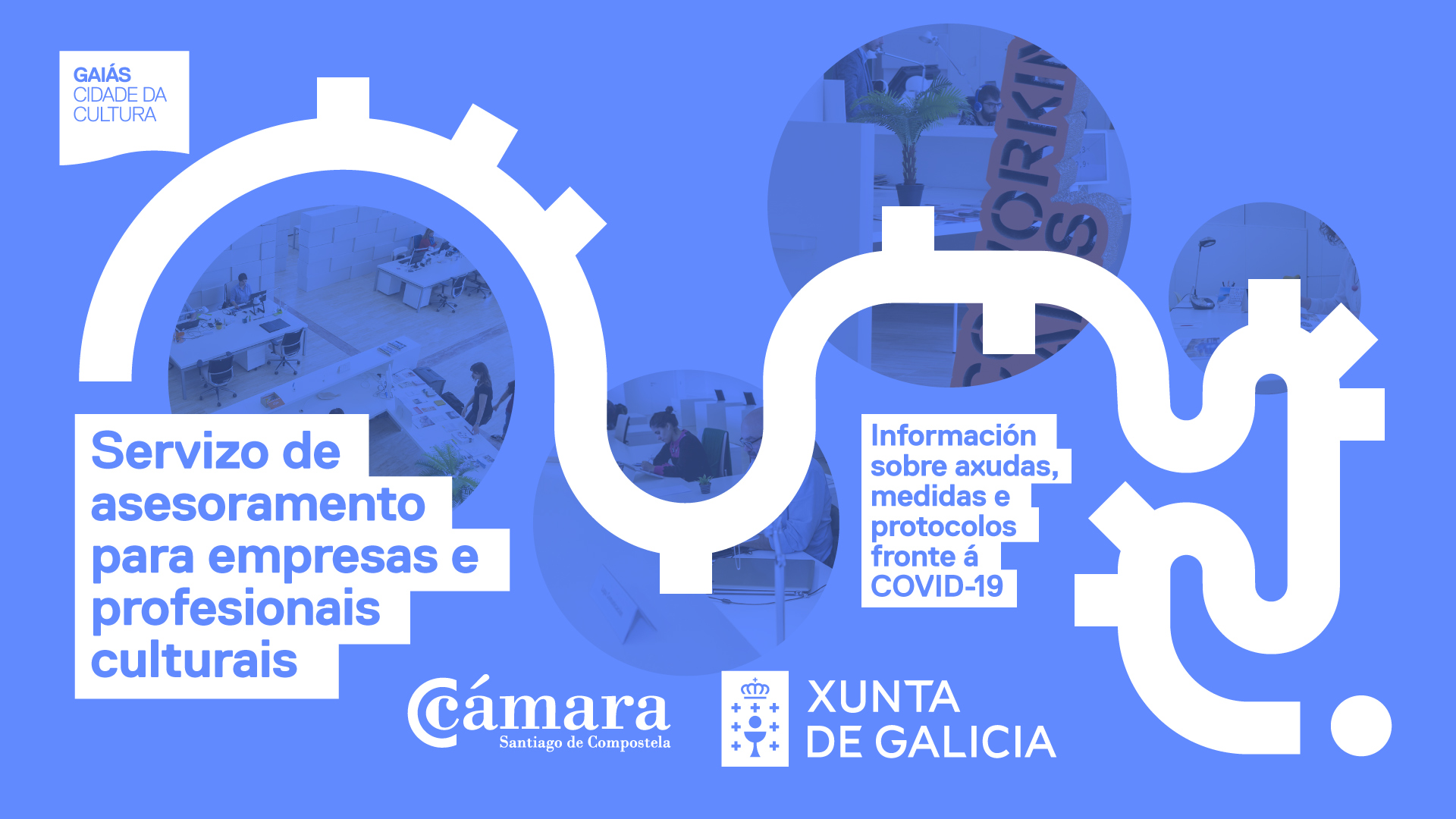 A Xunta de Galicia, en colaboración coa Cámara de Comercio de Santiago de Compostela, pon en marcha un servizo de asesoramento dirixido a empresas e profesionais culturais no marco do Plan de Reactivación dos sectores cultural e turístico fronte aos efectos derivados do COVID-19. Terá como obxectivo dar resposta a todo tipo de dúbidas de carácter laboral, fiscal e mercantil relacionadas coas medidas deseñadas para paliar as consecuencias económicas do COVID-19, asesorando sobre as diferentes liñas de axudas ás que poden optar as empresas e profesionais do sector cultural, así como outras dúbidas sobre cuestións como ERTE, prestación por cese de actividade, plan de desescalada, moratorias nas cotizacións á Seguridade Social, aprazamentos de impostos, etc.