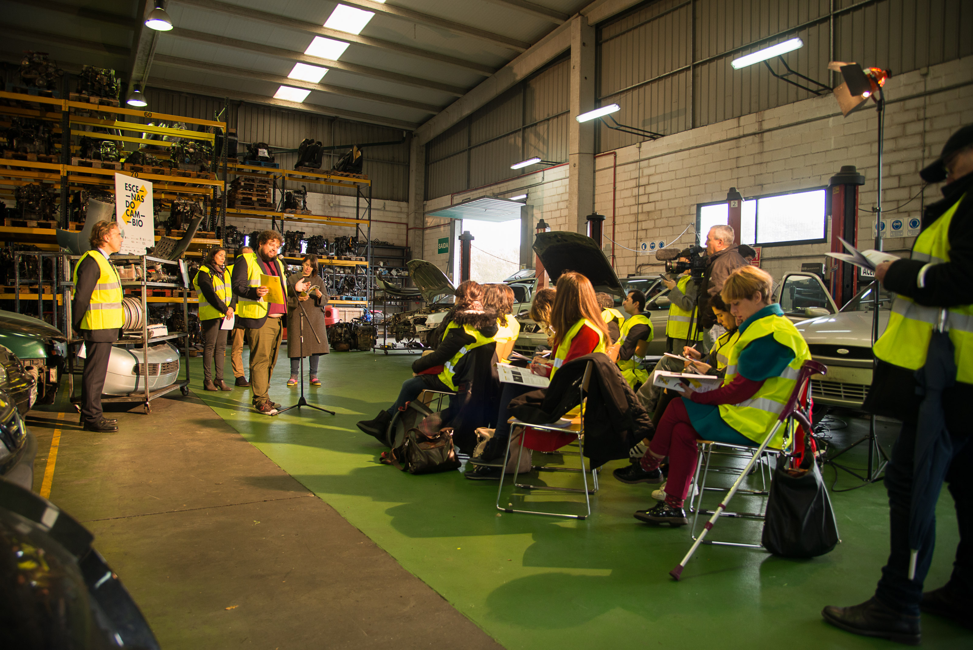 Precisamente, a presentación tivo lugar neste taller, situado no Polígono do Tambre, en Santiago de Compostela, como xesto cómplice coa montaxe de Voadora, na que se aborda o papel da muller no mundo da industria do motor e que, en coprodución con MA Scène Nationale - Pays de Montbéliard, foi representada por primeira vez este ano en Francia. Na súa estrea en España para este festival as protagonistas serán traballadoras de PSA Peugeot Citroën de Vigo.