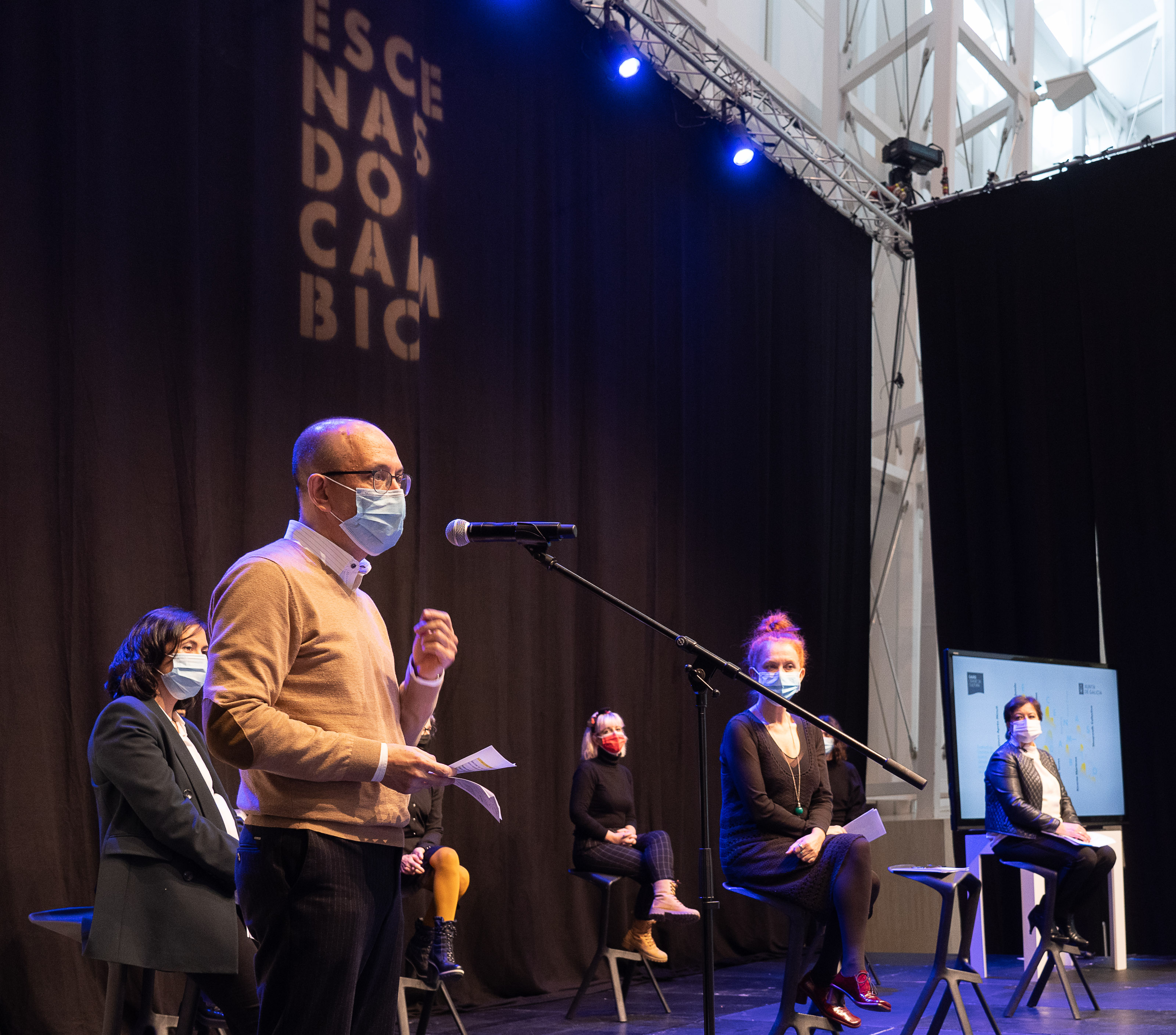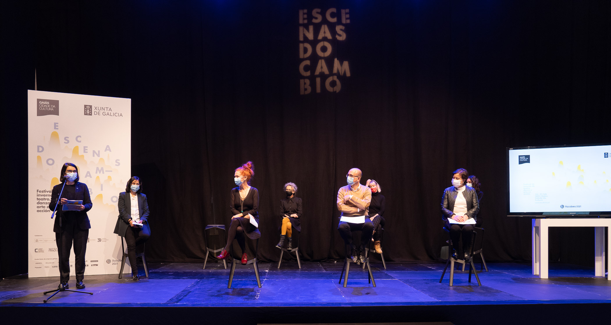 Así o avanzou hoxe na rolda de prensa de presentación de Escenas do cambio 2021 o secretario xeral de Cultura da Xunta, Anxo M. Lorenzo, quen estivo acompañado da secretaria xeral da Igualdade, Susana López Abella; da directora-xerente da Cidade da Cultura, Ana Isabel Vázquez; da concelleira de Cultura do Concello de Santiago, Mercedes Rosón; da directora do festival, Lola Correa; e dunha representación galega de artistas e compañías que participan: as directoras teatrais Marta Pazos, de Voadora e Ana Vallés, de Matarile Teatro, e as coreógrafas Begoña Cuquejo, Clara Ferrão e Paula Quintas.