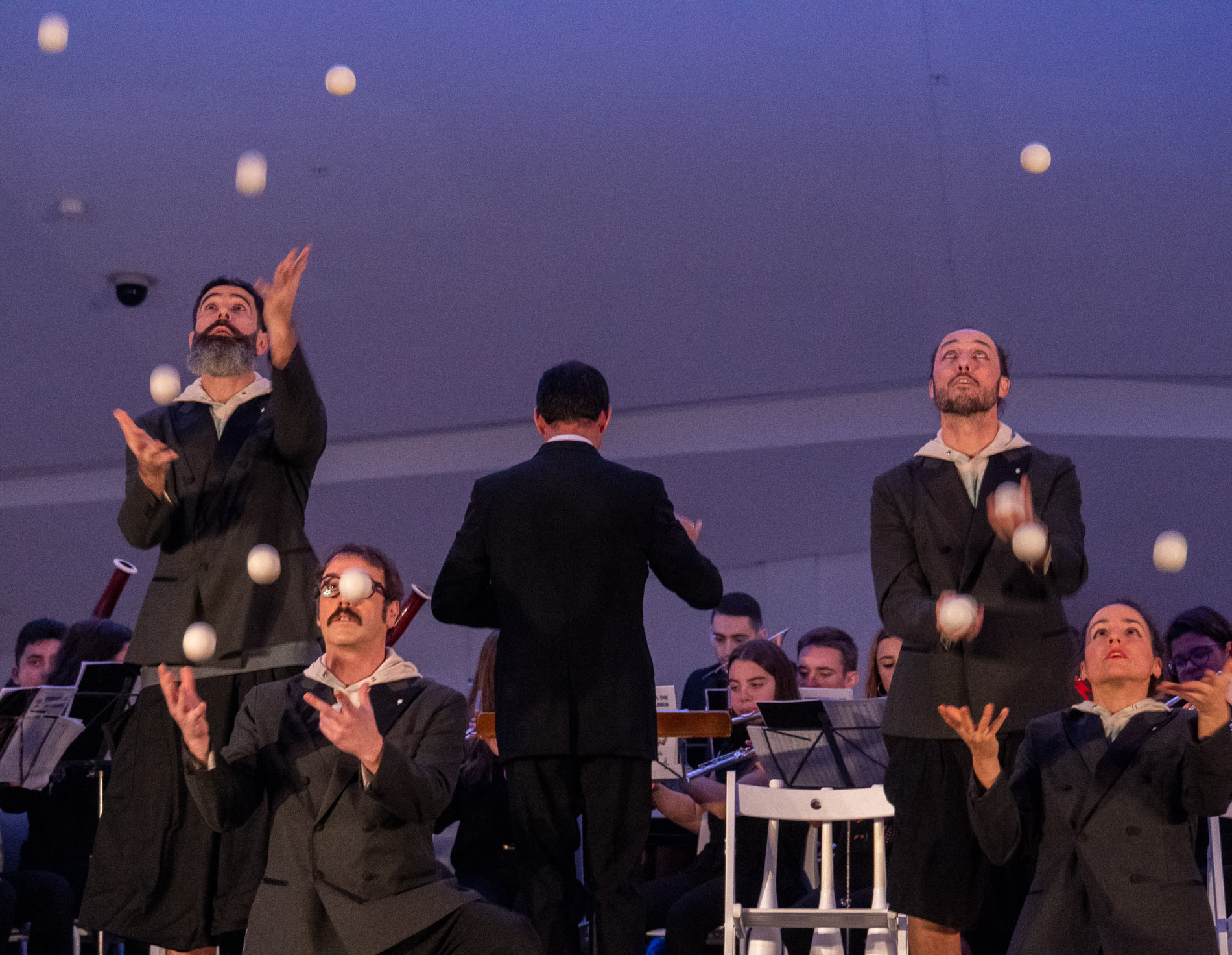 Orquestra de malabares foi ademais o espectáculo de peche de Viraxes, o ciclo de concertos promovido pola Consellería de Cultura e Turismo no que as bandas populares lle deron unha volta aos seus repertorios máis tradicionais mesturando a súa música con xéneros como a clásica, o teatro ou o circo.
