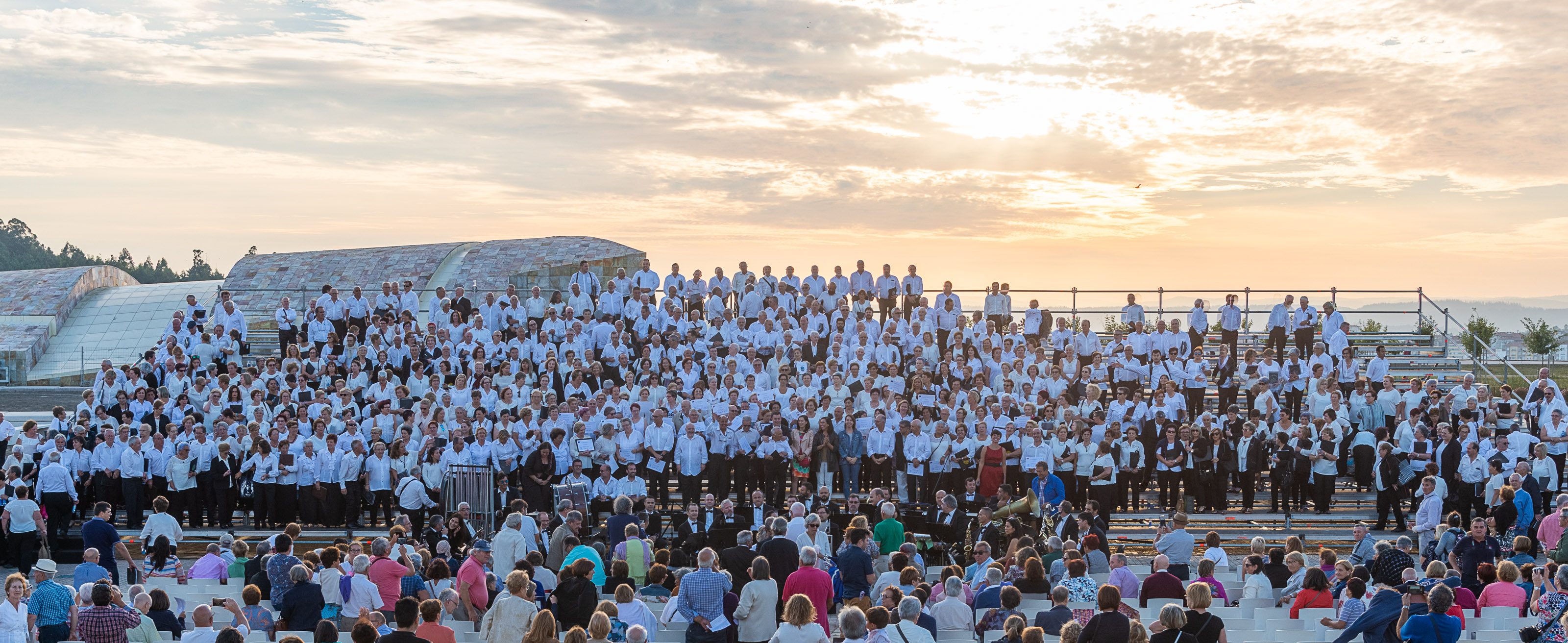 A Cidade da Cultura acolleu a tarde de hoxe a XV Romaría Coral galega, o evento máis importante en Galicia deste xénero musical, ao reunir preto de 800 voces na Praza Central do Gaiás, procedentes de 34 agrupacións. Todas elas entoaron de maneira conxunta pezas do cancioneiro popular galego e internacional, obras de autores clásicos e, como alfinete de ouro, remataron interpretando o Himno galego, acompañados pola Banda Municipal de Música de Santiago.