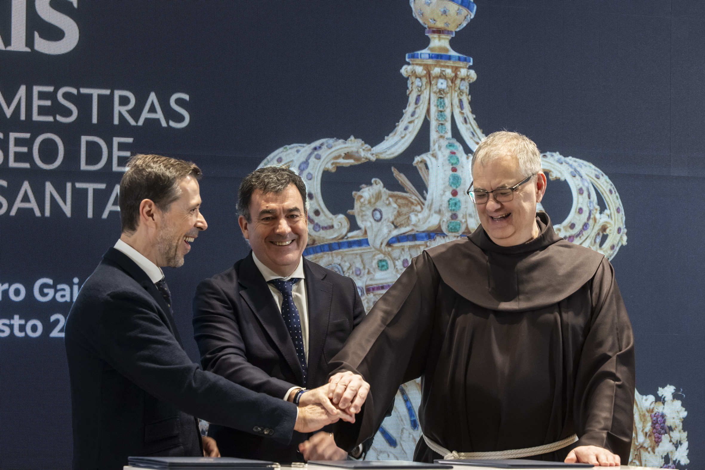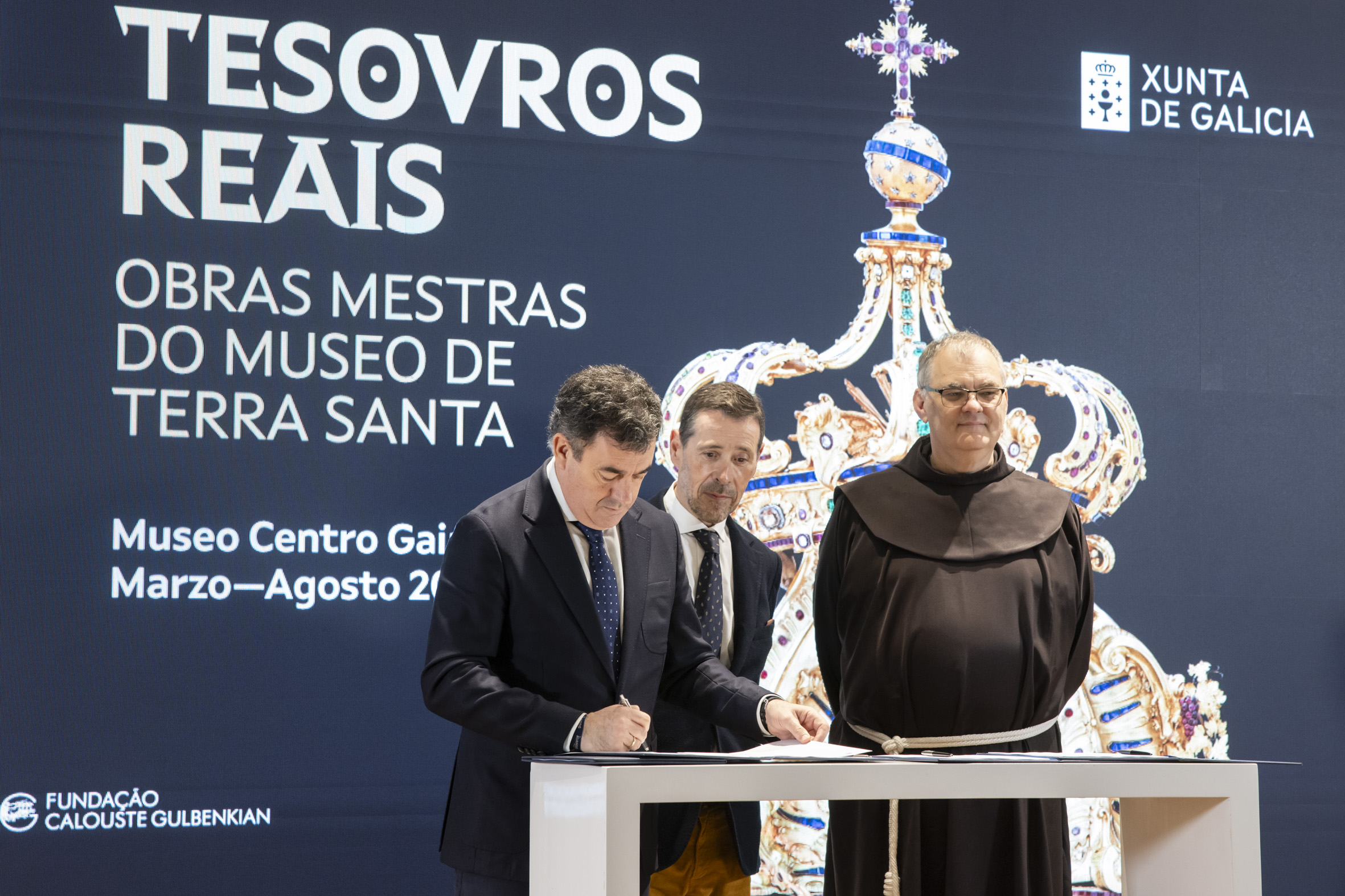O titular de Cultura do Goberno galego subliñou que Tesouros reais suporá para o público galego “a oportunidade única de contemplar obras conservadas durante séculos pola Custodia Franciscana da Terra Santa de Xerusalén, doazóns realizadas ao longo de 500 anos polas monarquías máis poderosas de Europa, desde cálices, xoias, códices, baldaquinos, lámpadas... pezas únicas, de metais e pedras preciosas, elaboradas polos mellores ourives, artesáns e artistas da época”.