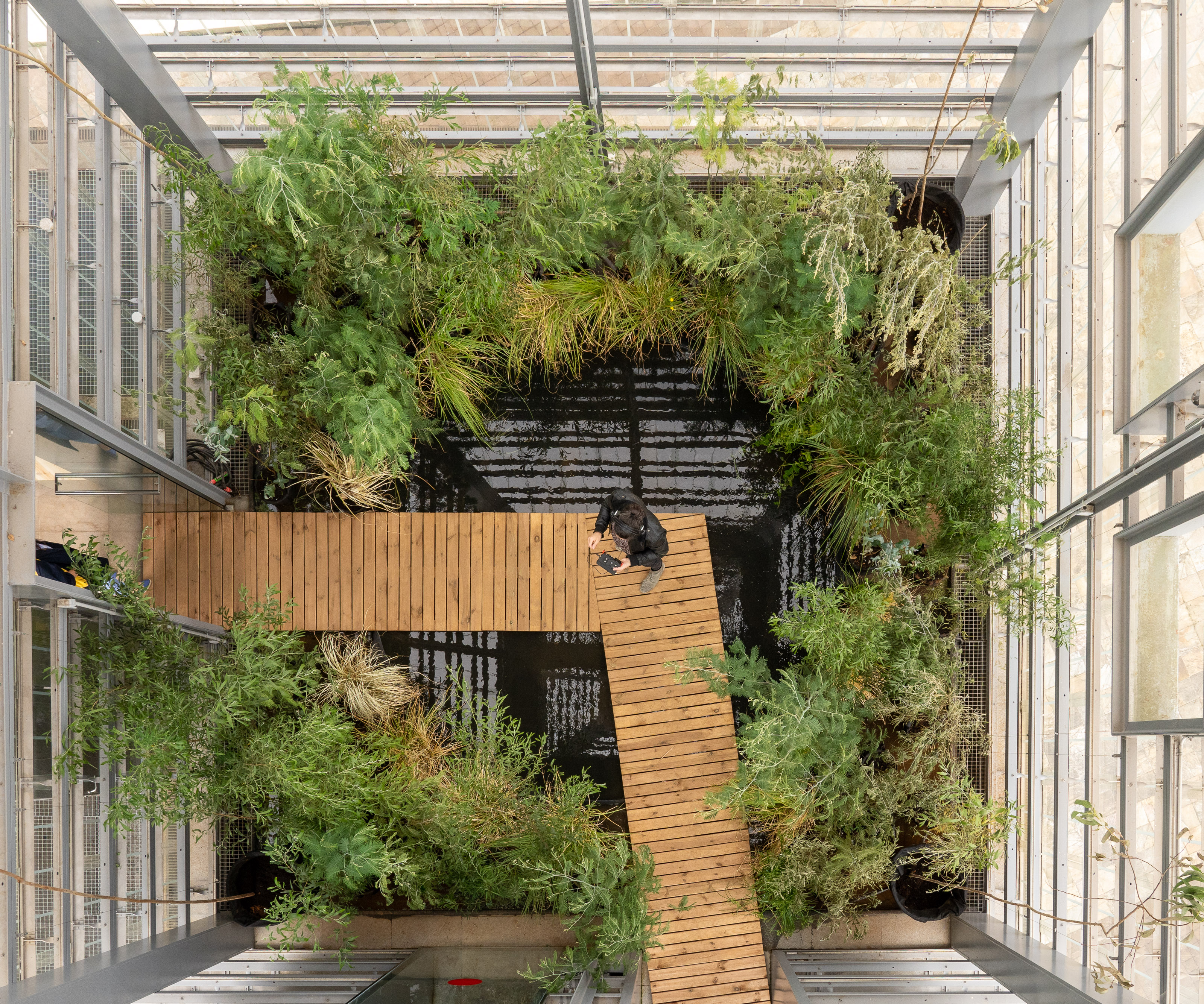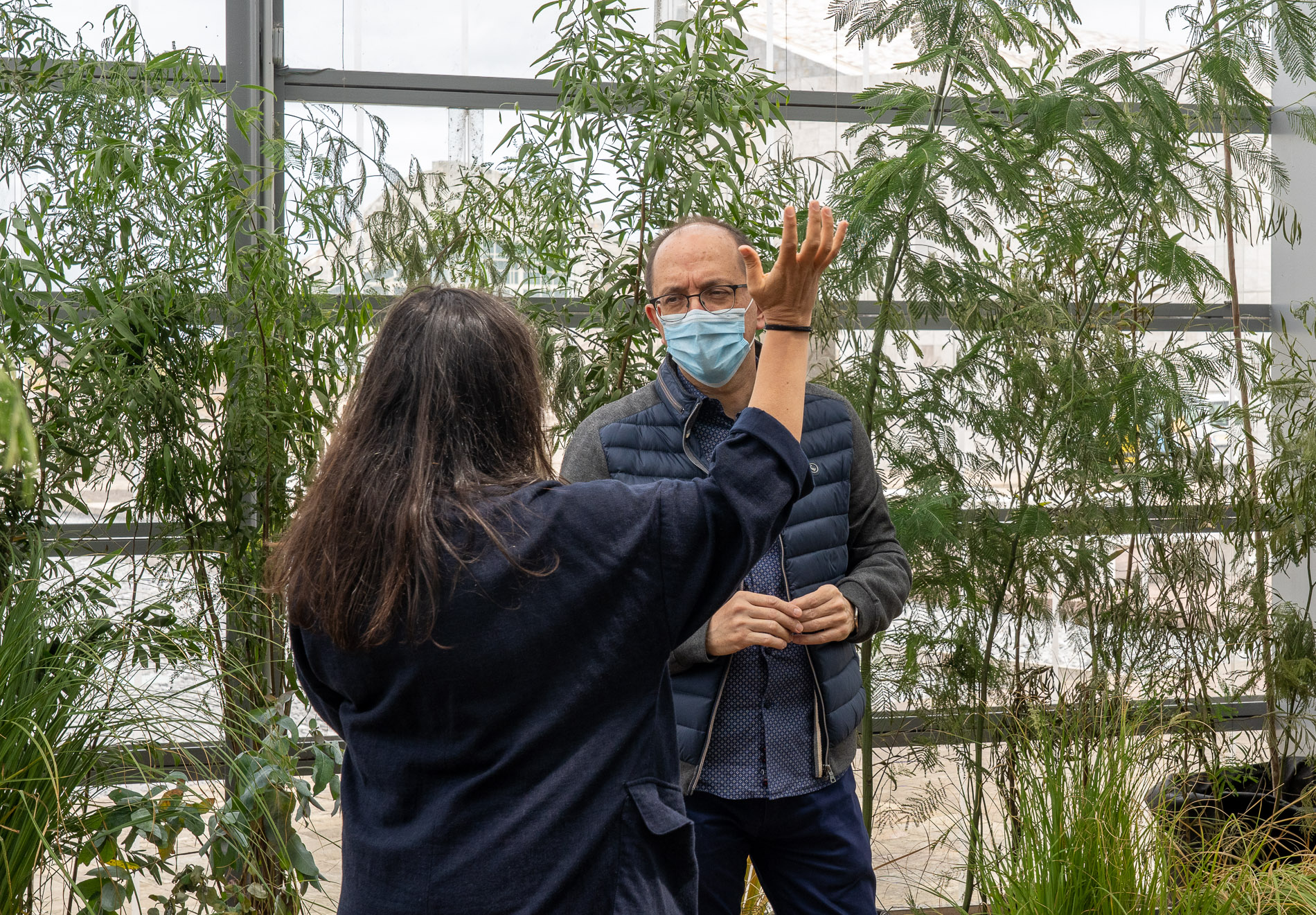O director xeral de Políticas Culturais, Anxo M. Lorenzo, achegouse a visitala, guiada pola instalación pola autora, a arquitecta paisaxista Cristina García Fontán, quen lle explicou a reconstrución na torre opaca dun bosque con vexetación típica con musgo, liques, matogueira, breixo e toxo; mentres que na transparente, recreou un monte ateigado de plantas foráneas, como eucaliptos, mimosas e outras plantas adventicias frondosas, que dificultan a visibilidade.