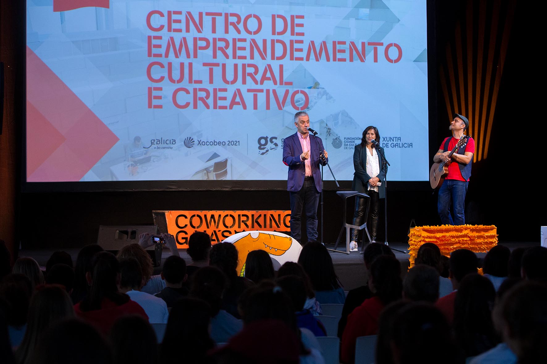 O Gaiás acolle hoxe durante todo o día esta xornada de convivencia entre nove centros de ensino de toda Galicia, durante a que os propios rapaces e rapazas soben ao escenario para presentar os seus proxectos. Abriron as presentacións os rapaces e rapazas do IES Maximino Romero de Lema (Baio) que elaboraron un proxecto colaborativo co IES Marco do Camballón (Vila de Cruces) para dinamizar a improvisación oral entre a xente nova e presentaron ademais o xogo de creación propia Regueifadiviña. A continuación foi a quenda dos alumnos e alumnas do IES Plurilingüe A Cachada (Boiro) para presentar o videoclip Xa non atendo ao meu amigo.
