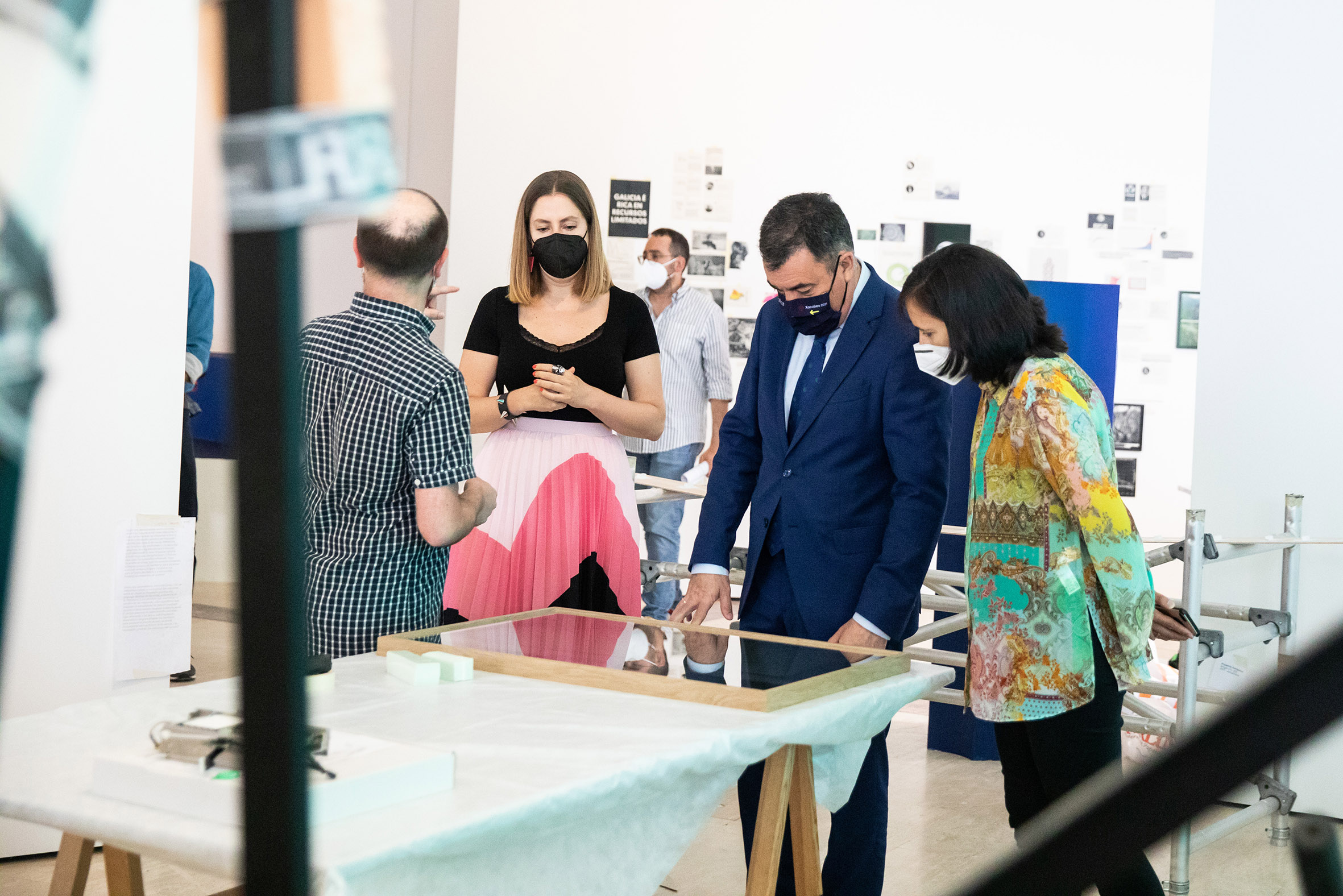 O conselleiro de Cultura, Educación e Universidade, Román Rodríguez, tivo a oportunidade esta mañá de conversar con varios dos artistas que participan nesta exposición durante unha vista aos traballos de montaxe no Museo Centro Gaiás. O titular de Cultura do Goberno galego definiu Galicia futura como “un elemento xerador de actividade no sector cultural en Galicia”, remarcando que “no contexto de recuperación que estamos a vivir, estamos ante un proxecto expositivo que promove a creación dun xeito moi notable”.