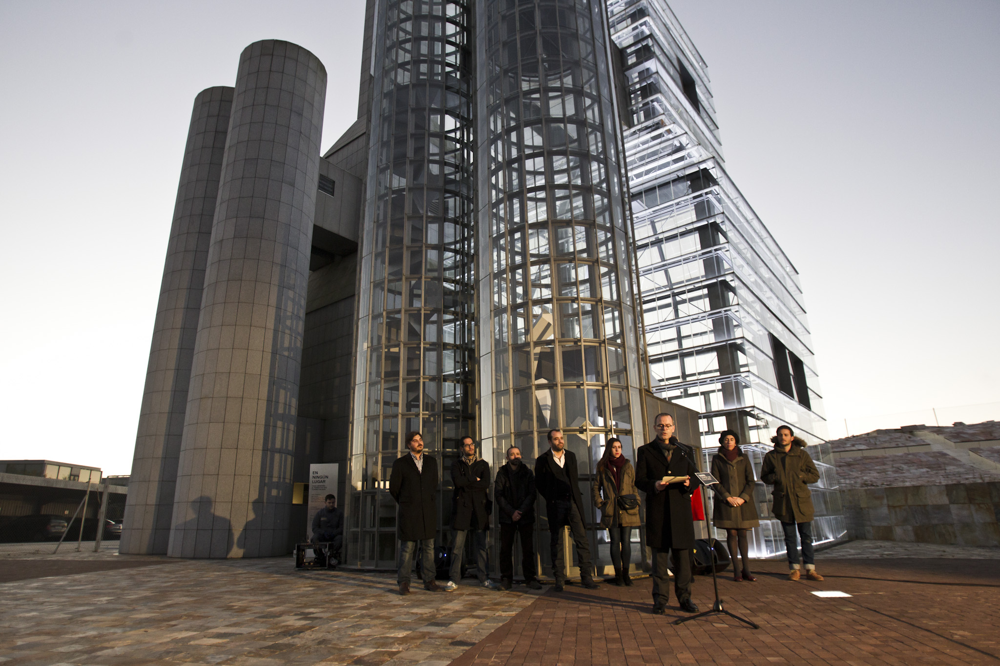 Co proxecto En ningún lugar. Unha memoria alternativa das Torres Hejduk, os artistas Juan Cañamero, Iago Eireos, Miguel Ángel Moreno Carretero, Ana Esteve Reig, Alejandro Ramírez Ariz e Pablo Martínez Muñiz comisariados por Carlos Delgado Mayordomo, presentan nas Torres do Gaiás cinco intervencións que buscan sacar á luz dimensións evocadoras que suxiran múltiples sentidos do lugar e que sirvan para iluminar diversos aspectos da complexidade conceptual do edificio.