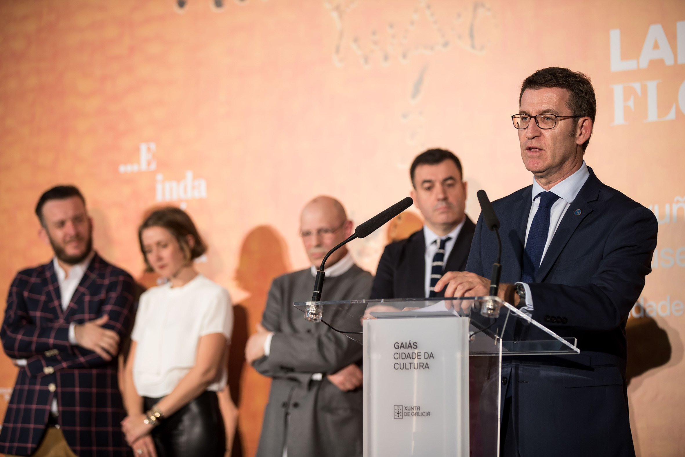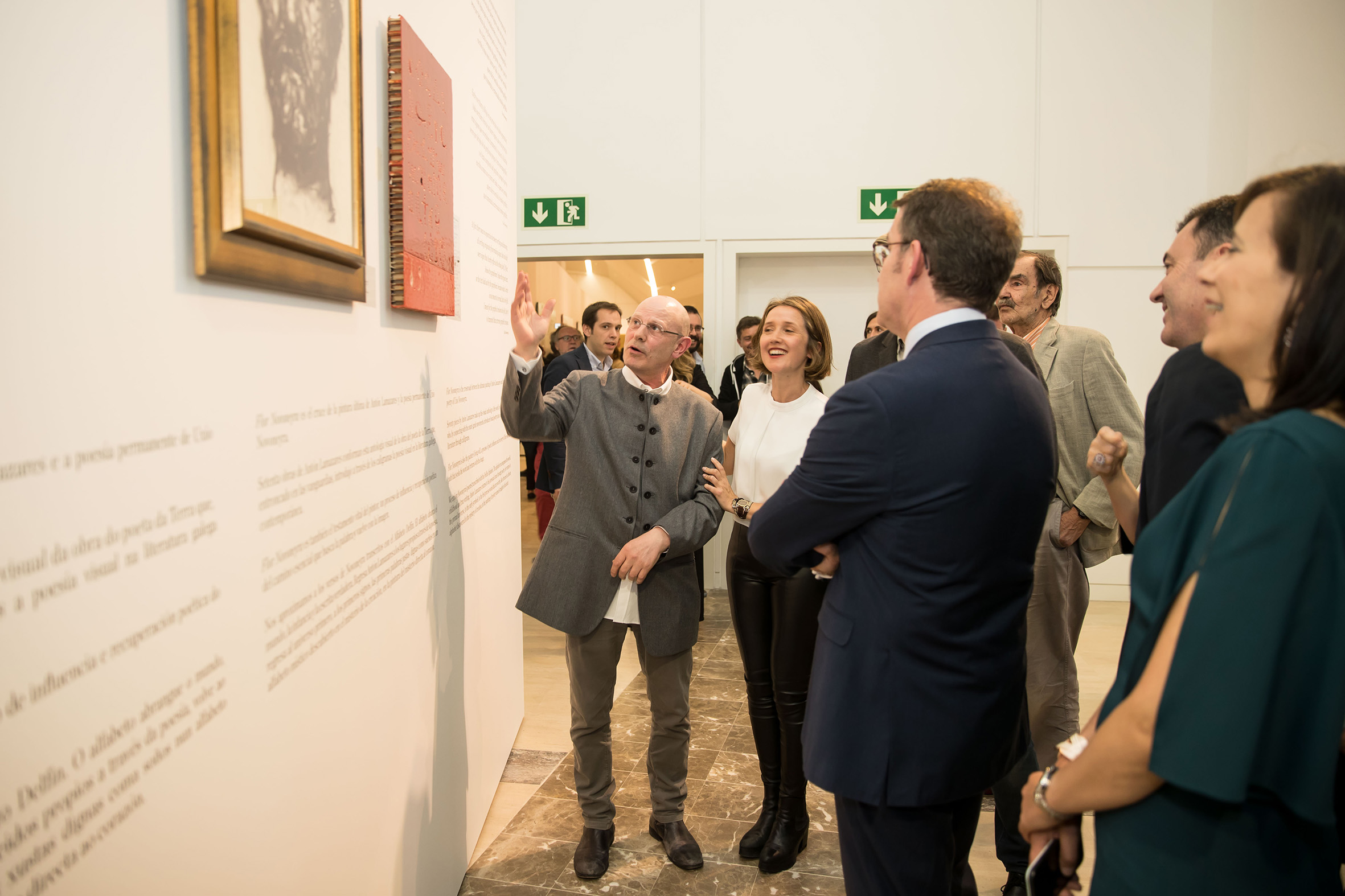 Durante o acto de inauguración, Feijóo afirmou que, ademais da beleza extraordinaria das máis de 100 pinturas de Lamazares e os 50 caligramas, gravados e debuxos de Novoneyra, hai unha lección indiscutible de que a mestura de manifestacións culturais ou de épocas é un proceso que sempre suma, que acumula e non exclúe.