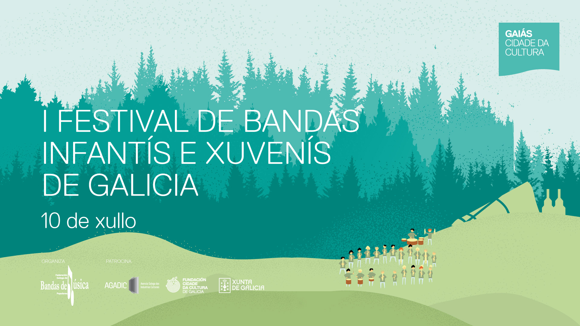A Cidade da Cultura de Galicia acollerá este domingo 10 de xullo o I Festival de Bandas Infantís e Xuvenís, un novo encontro musical no que participarán preto de 500 mozos e mozas instrumentistas procedentes de 11 agrupacións musicais galegas, co dobre obxectivo de avanzar na súa formación e de amosar o seu traballo ao público.