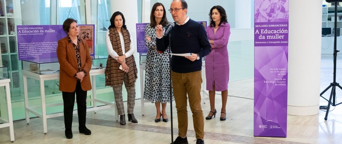 O director xeral de Políticas Culturais, Anxo M. Lorenzo, e a directora xeral de Avaliación e Reforma Administrativa e secretaria xeral da Igualdade por delegación, Natalia Prieto, asistiron á inauguración da mostra Mulleres sobranceiras. A educación da muller. Homenaxe a Concepción Arenal, con motivo do Día Internacional das Mulleres.