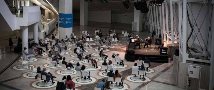 A Cidade da Cultura de Galicia despediu hoxe a exposición As miradas de Isaac cun concerto no Museo Centro Gaiás do cuarteto de corda 'Grupo Instrumental s. XX' con todas as entradas, previa retirada de convite, esgotadas. Deste xeito especial clausurouse a primeira gran mostra realizada pola Xunta de Galicia en homenaxe á figura de Díaz Pardo, co gallo de cumprirse en 2020 o centenario do seu nacemento, e que recibiu máis de 26.000 visitantes durante os seis meses da súa exhibición no Museo Centro Gaiás, desde o pasado 6 novembro ata este 30 de maio.
