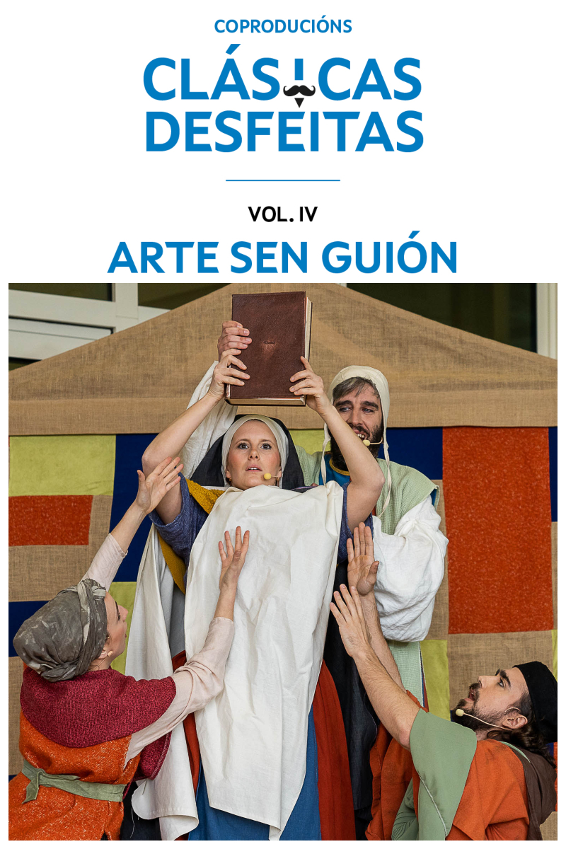 ¿Existió el teatro medieval en gallego? La compañía Galeatro investiga y se interroga en Arte sen guión sobre la posibilidad de un teatro clásico gallego del que no existen obras escritas. Cuatro comediantes representan las piezas recogidas en un extraño Códice de la Edad Media, en una especulación improvisada, una comedia que nos recuerda que ni antes eran tan antiguos, ni ahora somos tan modernos.