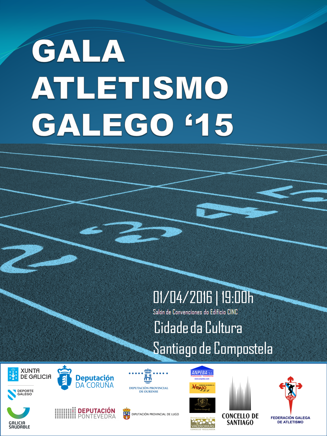 El próximo día 1 de abril tendrá lugar en la Cidade da Cultura en Santiago de Compostela la Gala Anual del Atletismo Gallego. El evento acogerá los premios de distintos estamentos del atletismo gallego que destacaron en la temporada 2014/15. Atletas, jueces, entrenadores, ayuntamientos, diputaciones, etc. son algunos de los premiados.