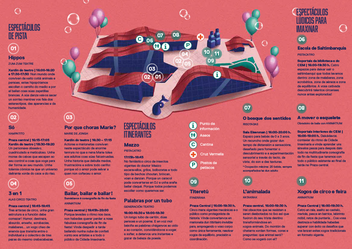 - Coreografía de fin de festa | Animatium [Praza central: 19.45-20.00h]. Porque levades o ritmo nos ósos, sumádevos a esta multitudinaria coreografía coa que despediremos a tarde nunha nube de confeti xunto a todo o público da Cidade Imaxinaria. Sentirédesvos como estrelas de Bollywood!