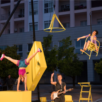 TRANSIR (Rojo Telón - País Vasco) – Circo, acrobacias aéreas Un juego sobre la transición y el cambio, la vida y la muerte. Con una puesta en escena ligera en tono de humor, este espectáculo circense nos hace reflexionar sobre la necesidad de aceptar nuestra condición humana para poder pensar en el presente; lo que somos, sentimos o queremos. |